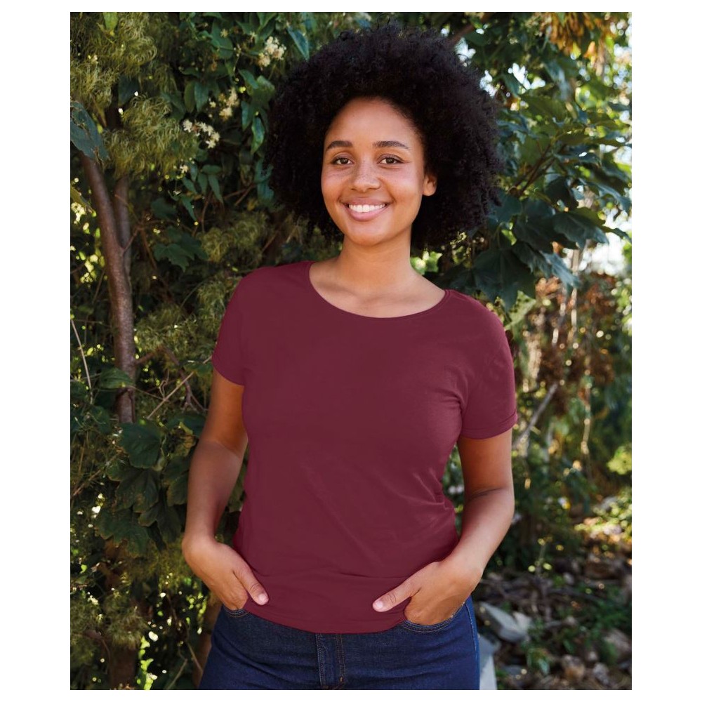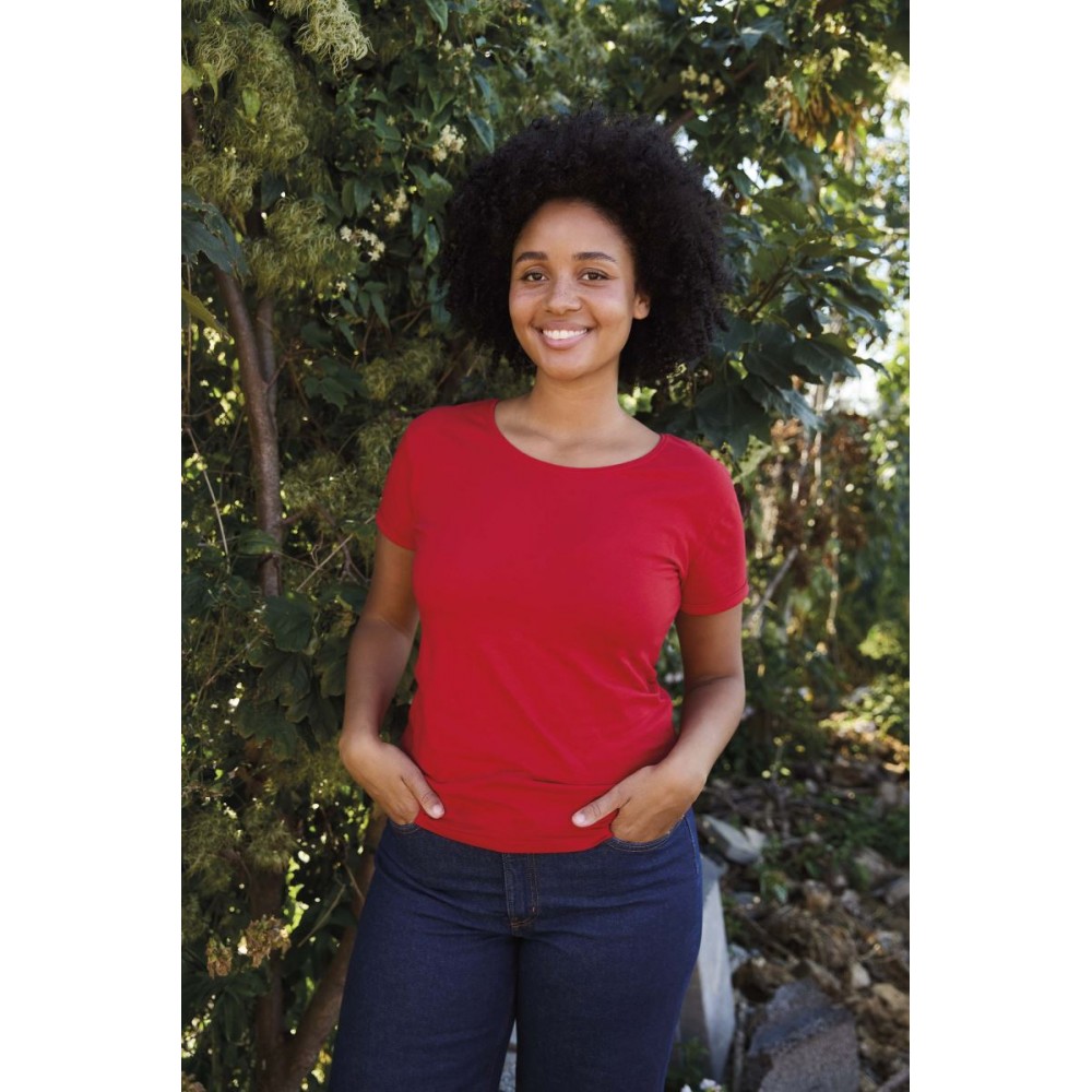 Lehce vypasovaný střih, výstřih z žebrovaného úpletu s elastanem, krční lemovka, manžety na rukávech s ohrnutým lemem, EU Ecolabel, SA 8000, pratelné na 60°, lze sušit v sušičce při nízké teplotě, doporučeno prát na 40°