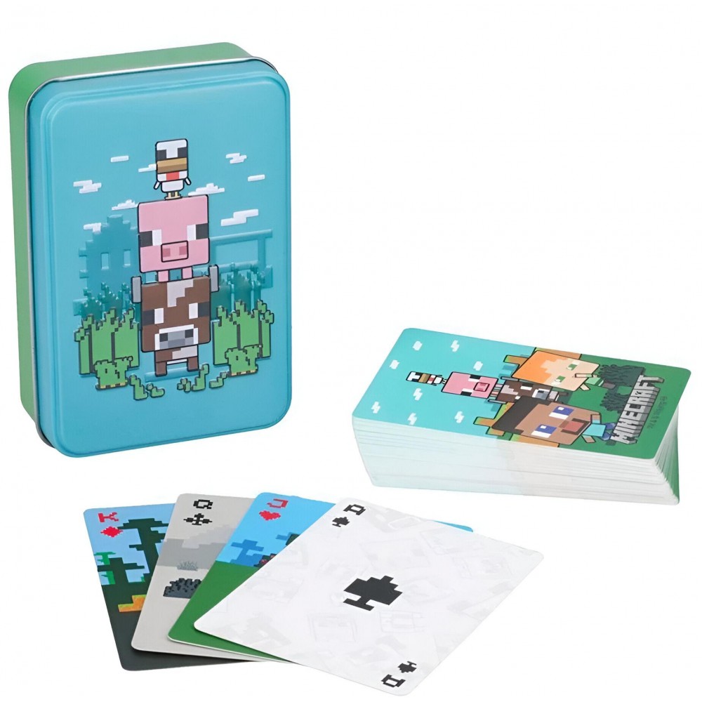 Uvnitř hezké a praktické plechovky najdeš hrací karty se zvířátky a dalšími postavami z kostičkového světa videohry Minecraft. Zahraj si svou oblíbenou karetní hru, ať už doma s rodinou nebo třeba na cestách s přáteli! V krabička obsahuje 52 karet (+2 žolíci).