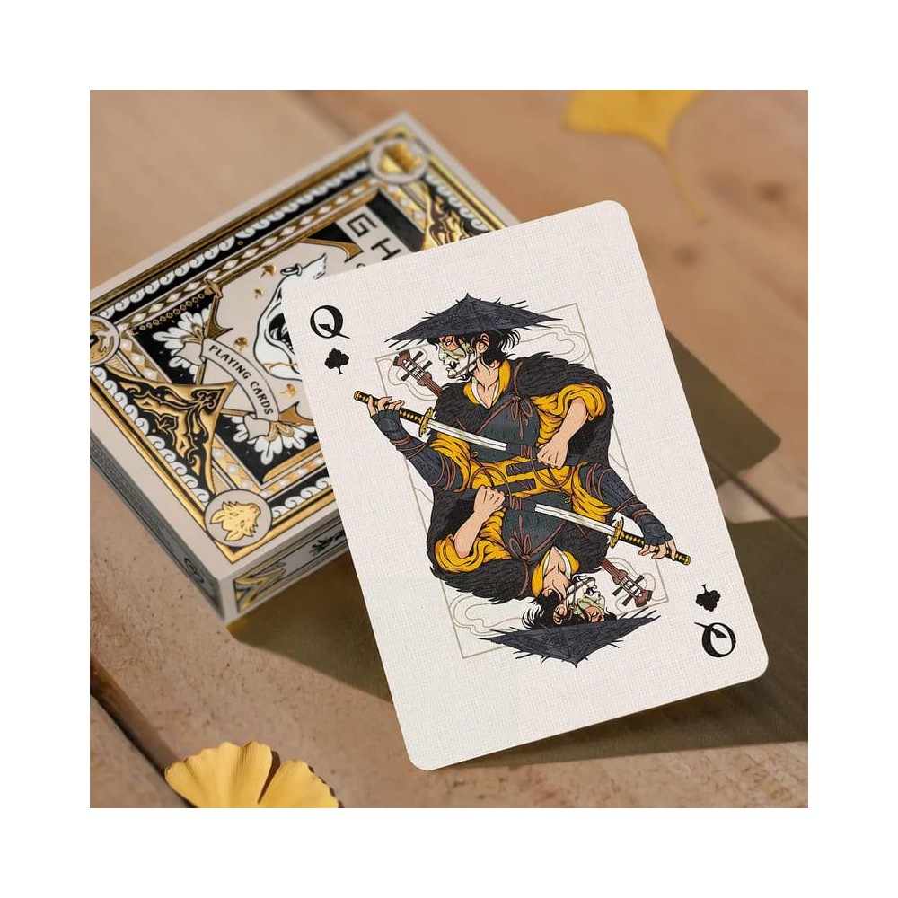 Pro všechny, kteří porazili Yōtei Six, i pro ty, kteří je stále loví, přichází odměna větší než mince – exkluzivní sběratelské hrací karty Ghost of Yōtei! Každá karta je ručně ilustrovaná a přináší kousek světa Yōtei přímo do tvých rukou. Čtyři dámské karty (Queen) představují ikonické brnění a legendární zbraně Atsu: Katanu, Kusarigamu, Yari a Dual Katanu. Yōtei Six zaujímají místo králů a kluků (Kings a Jacks), zatímco věrný vlčí společník stojí hrdě jako eso (Ace). Karty jsou vyrobeny z prémiového papíru pro casino standard, s německým černým jádrem a texturou lnu, která zajišťuje odolnost, příjemné míchání a dlouhou životnost. Sběratelská krabička je mistrovským dílem – uprostřed dominuje Onryo Mask od Atsu, doplněná reliéfními ornamenty v černé a lesklé zlaté Tyto karty nejsou jen na hraní, jsou to malé umělecké dílo!