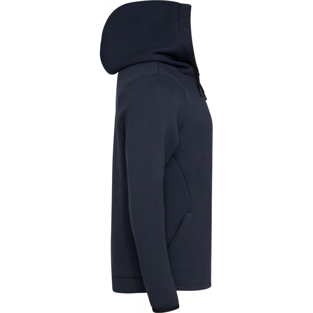 Podšitá kapuce se šňůrkou, elastické manžety na rukávech, 2 boční kapsy se zipem, dvojitě pletená, měkký pružný materiál, výšivka loga na okraji kapuce, pratelné na 40°, nelze sušit v sušičce, nelze chemicky čistit