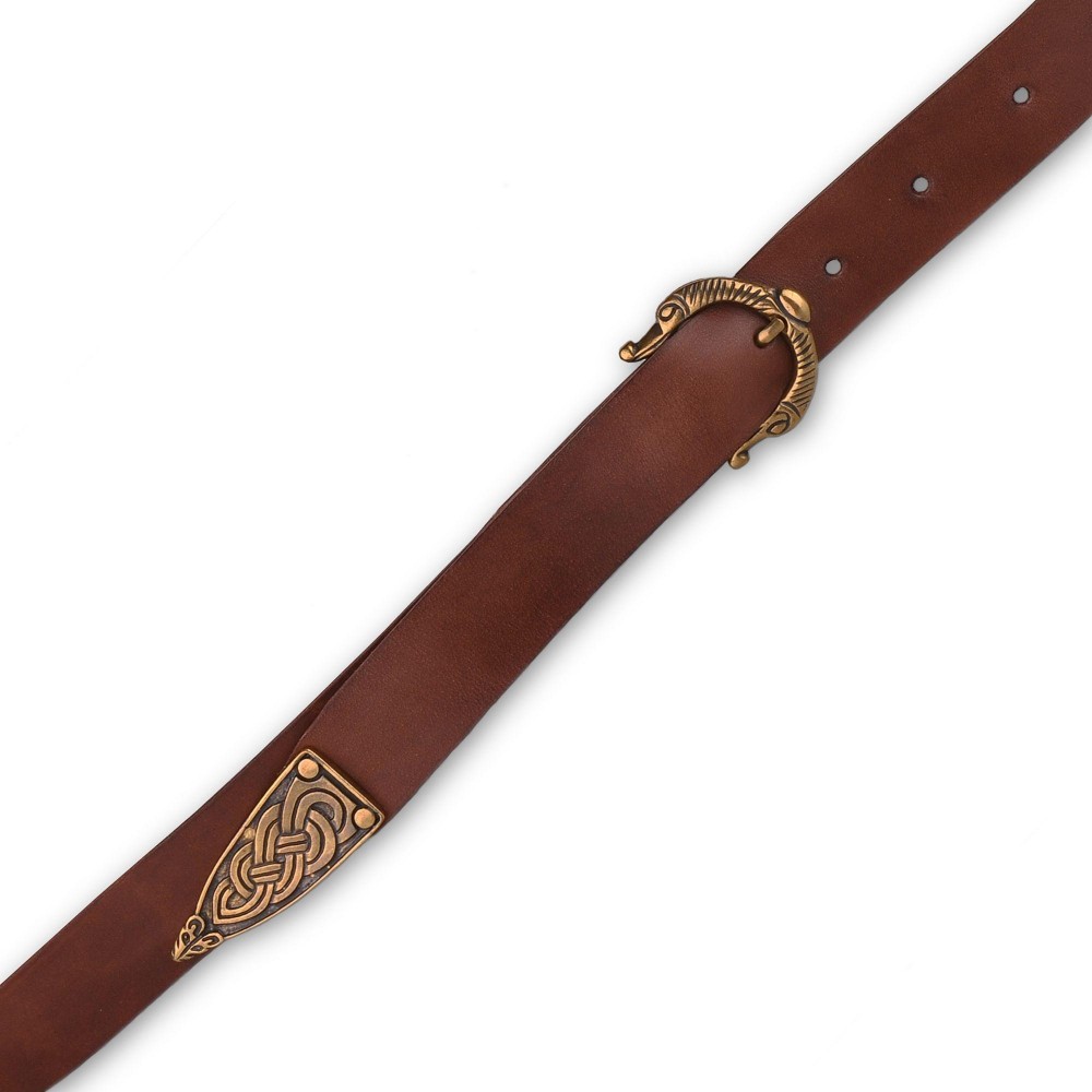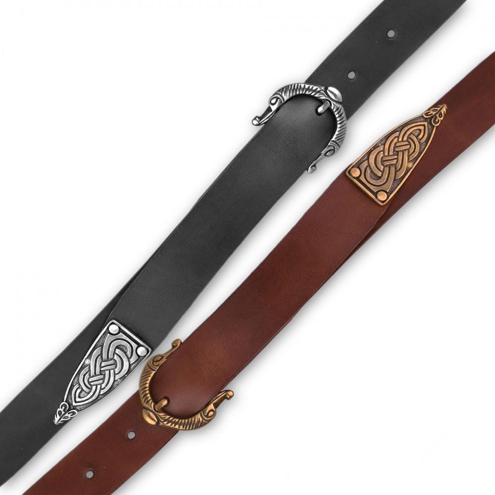 Stylový kožený opasek šíře 3 cm, tloušťky přibližně 2,5-3 mm. Spona i nákončík jsou zdobeny zvířecími motivy inspirovanými severskou mytologií. Opasek má dírky v rozmezí obvodu pasu cca 88 - 110 cm. Na přání můžeme vyrobit opasek dle požadovaných parametrů, například delší než 130 cm, jiná barva, bez nákončí a pod. V případě zájmu nás neváhejte kontaktovat, nebo napište požadavek do poznámky k objednávce.