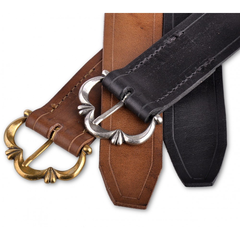Kožený opasek s kovovou přezkou středvěkého vzhledu. Opasek má dírky v rozmezí obvodu pasu cca 90 - 110 cm. Na přání můžeme vyrobit opasek dle požadovaných parametrů, například delší než 130 cm, jiná barva a pod. V případě zájmu nás neváhejte kontaktovat, nebo napište požadavek do poznámky k objednávce.