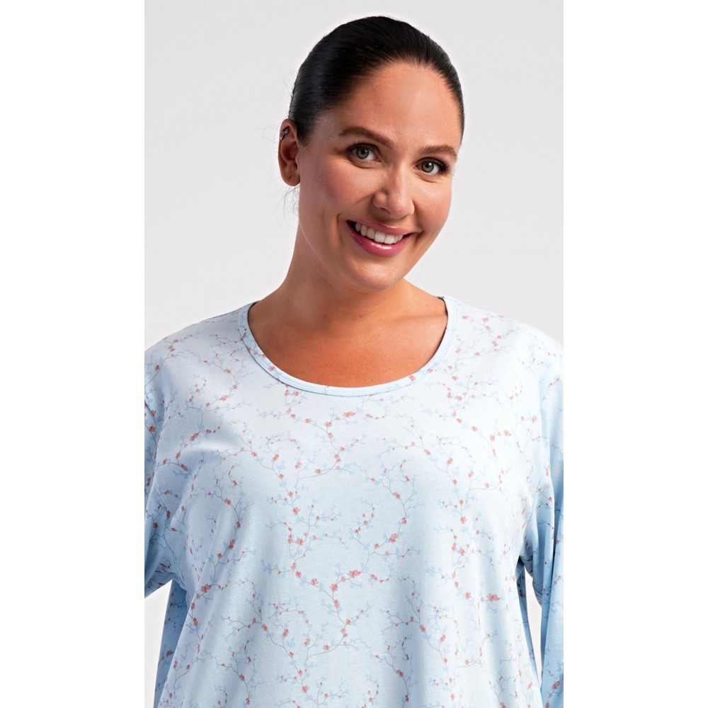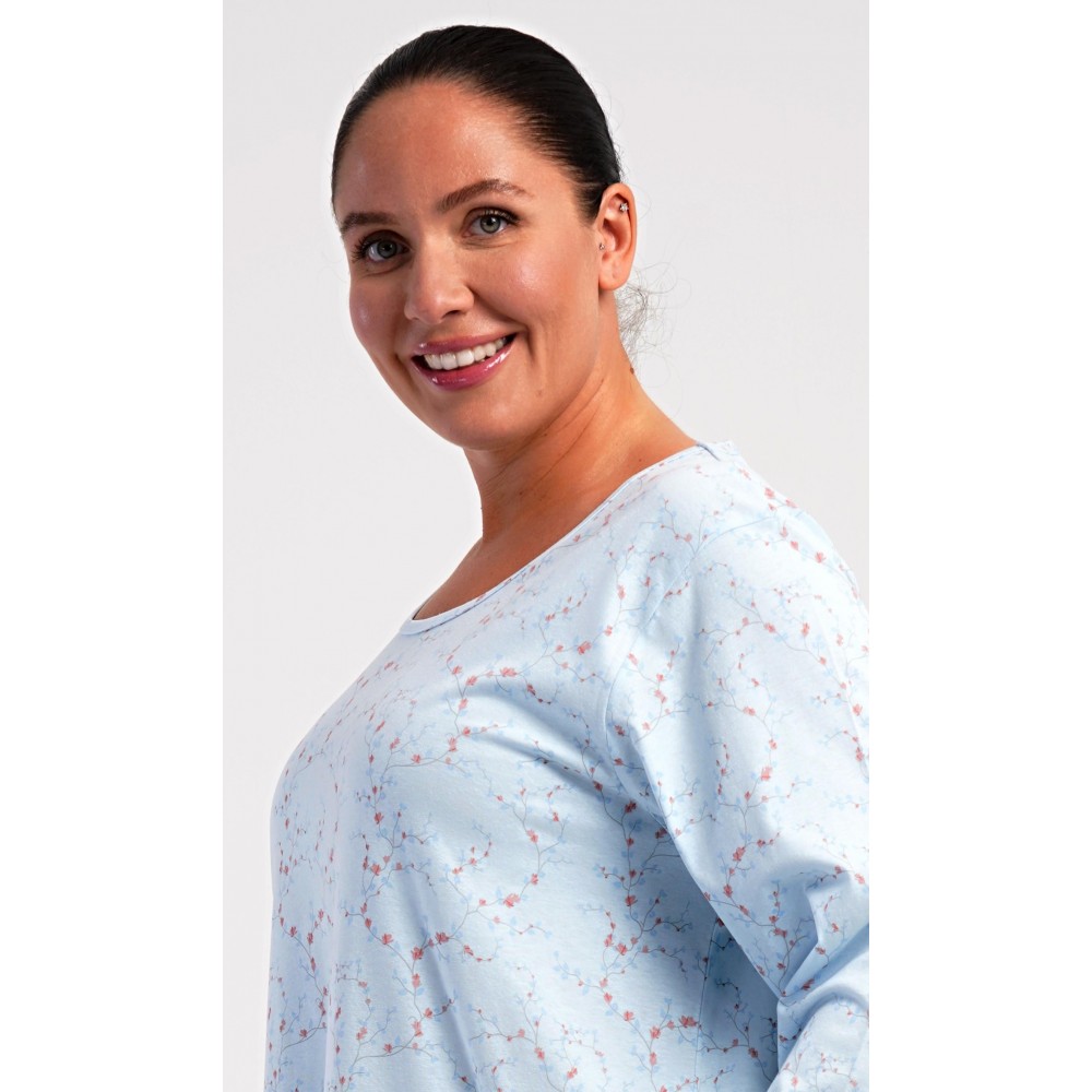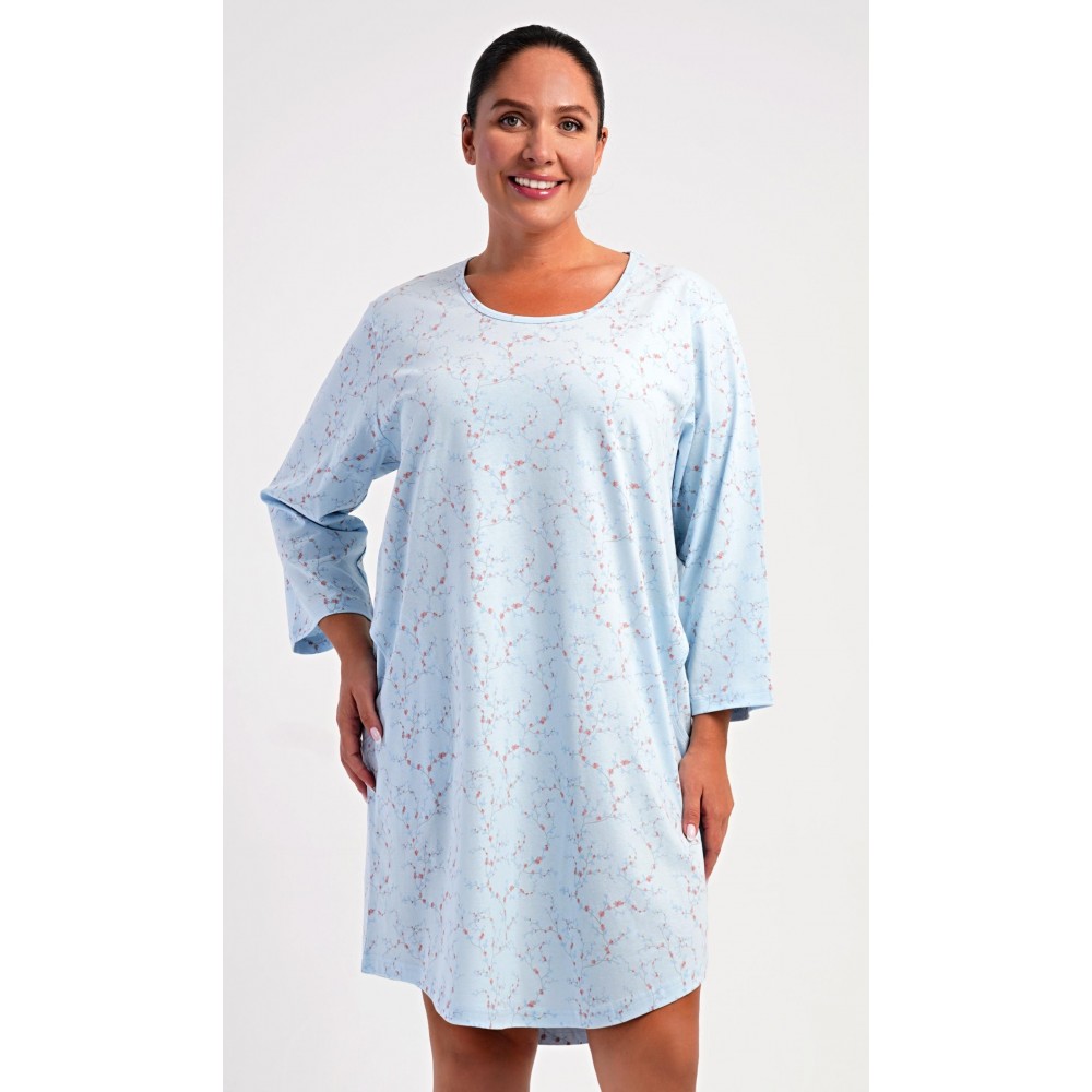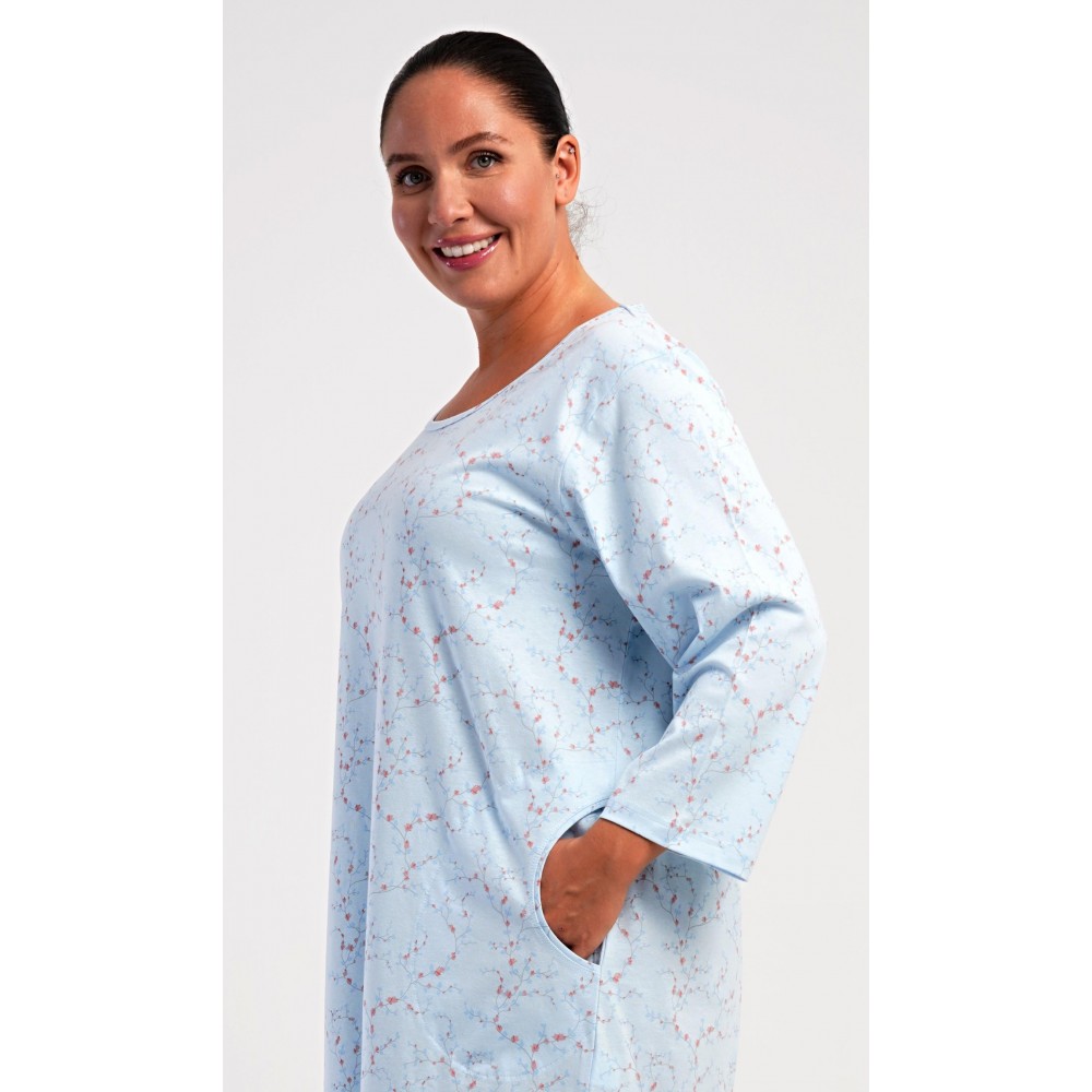 Dámské bavlněné domácí šaty s tříčtvrtečním rukávem Lauren. Domácí bavlněné šaty s kulatým výstřihem a praktickými kapsami jsou potištěny drobnými květy. Použitý bavlněný materiál je příjemný a poddajný na dotek.