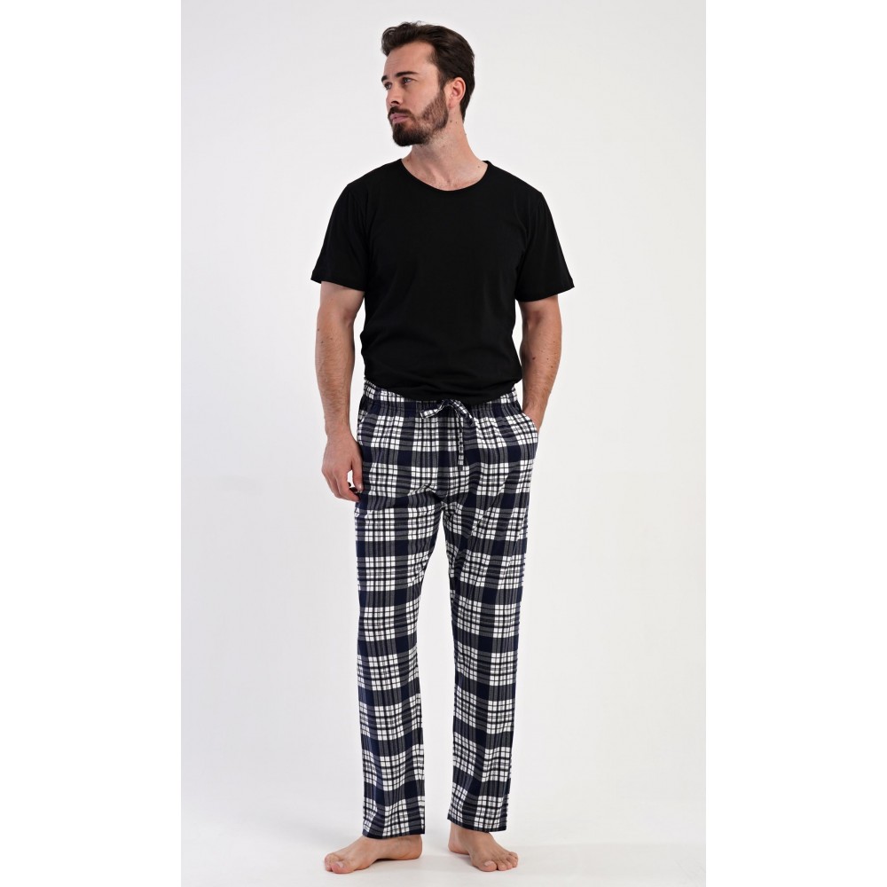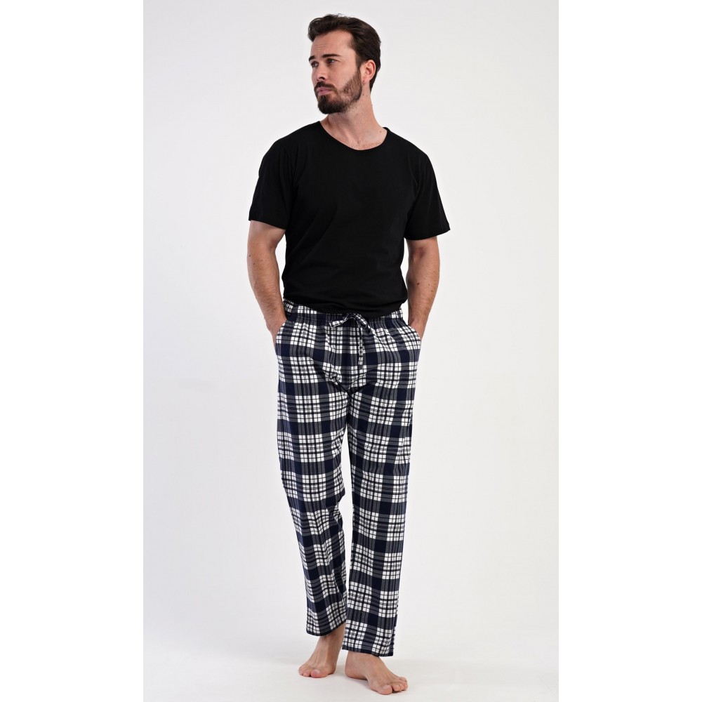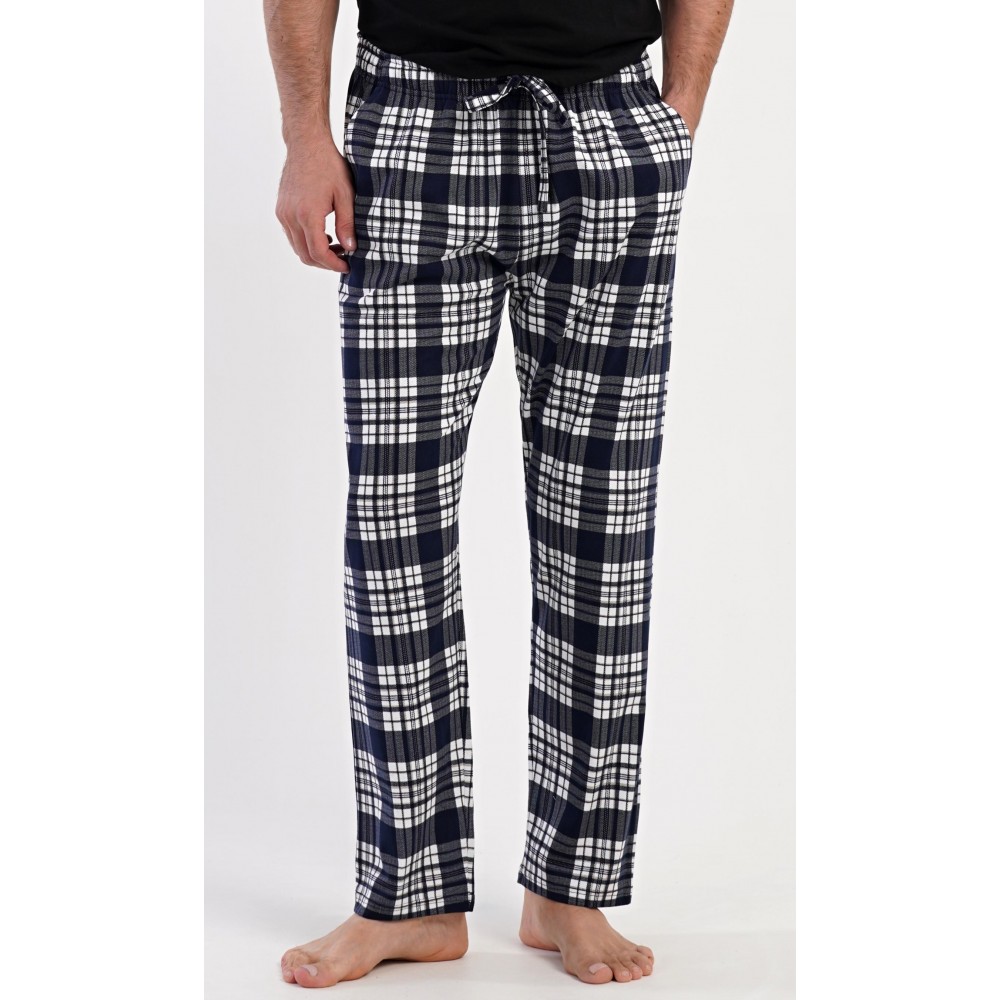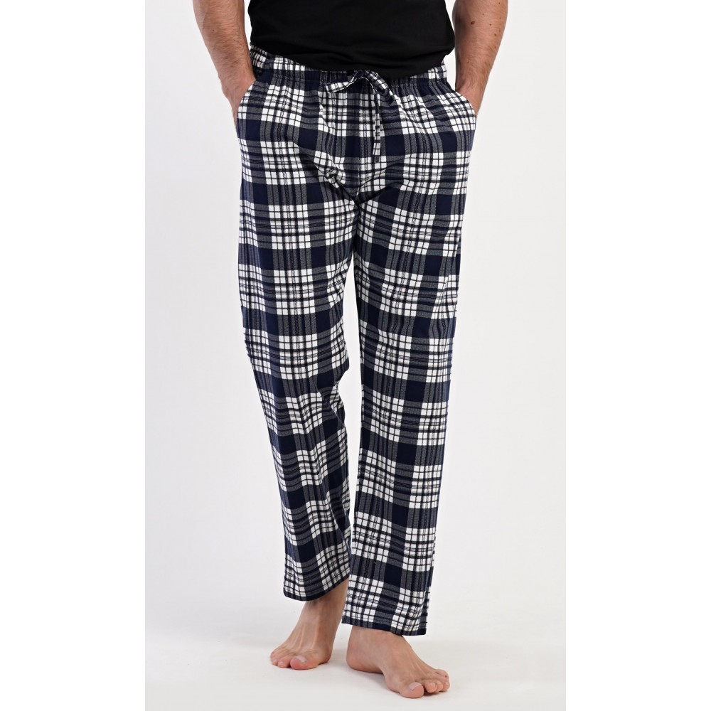 Pánské bavlněné pyžamové kalhoty Lukáš. Kostkované kalhoty mají v pase gumu, šňůrku na stažení a praktické kapsy. Mateiriál s podílem bavlny 100% je příjemný a poddajný na dotek.