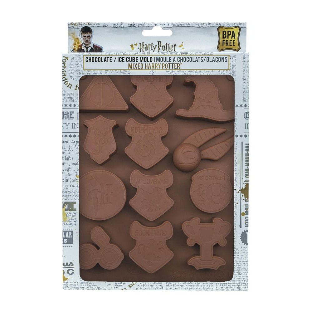 Vyrobte si pro svou potterovskou párty některý ze slavných symbolů z příběhů z Bradavic! Ať už na stylovou oslavu nebo pro příjemné domácí popíjení a mlsání, nyní si můžete do pití dát led a na zákusek čokoládu v podobě ikonického předmětu či znaku z Harry Pottera! Formička na čokoládu a led umožňuje vytvořit 12 symbolů z příběhů J. K. Rowlingové: Moudrý klobouk, znak koleje Mrzimor, Relikvie smrti, Zlatonka, znak koleje Zmijozel, Znamení zla, Nástupiště 9 a 3/4, znak koleje Havraspár, iniciály Harry Pottera, Ohnivý pohár, znak koleje Nebelvír a Harryho brýle a jizva. Osvěžte se s nápojem doplněným o zajímavě tvarované kostky ledu. A pokud milujete čokoládu, formičky se vám stanou ideálními pomocníky pro výrobu čokoládových bonbónů a pečených čoko muffinů!