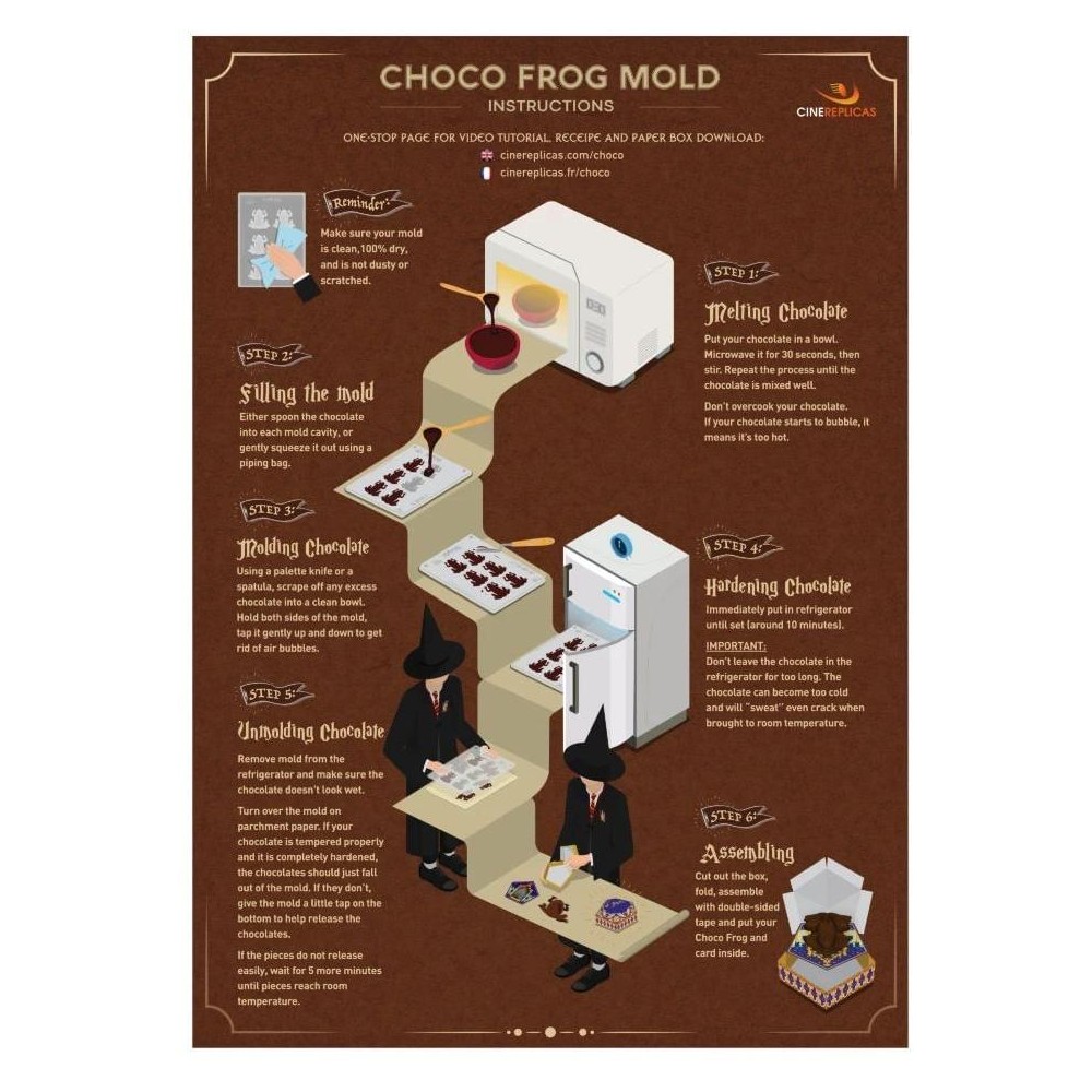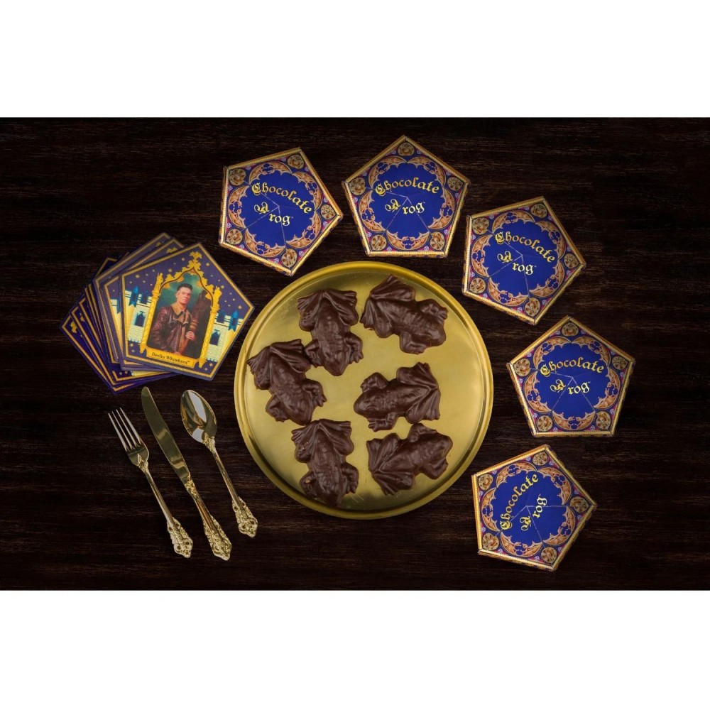 S touto sadou si vyrobíte čokoládu v podobě slavných čokoládových žabek z knih a filmů o Harry Potterovi. V balení naleznete 1 plastovou formičku na 6 žabek, 6 papírových krabiček na čokoládu a 12 karet slavných čarodějů. Hezký dárek pro všechny, kdo mají rádi dobrou čokoládu a příběhy kouzelnického učně z Bradavic.