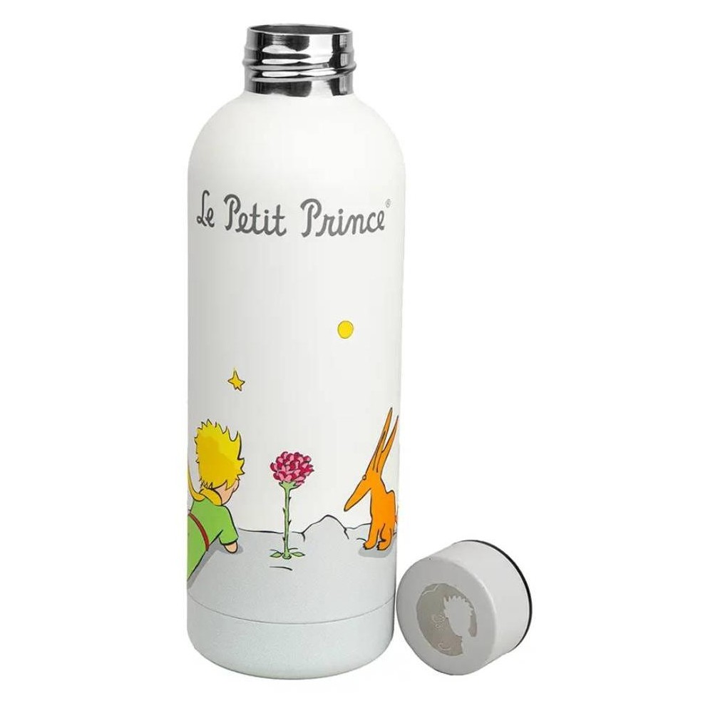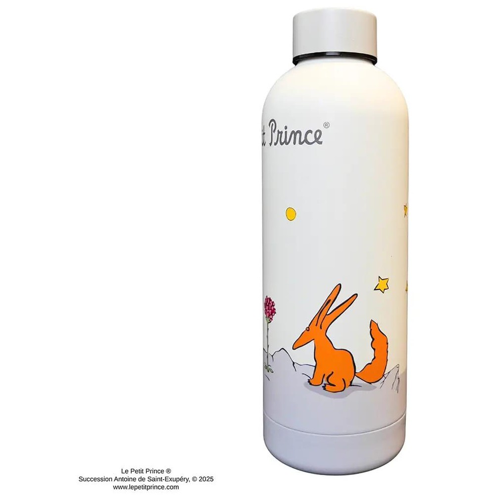 Vezmi si kousek poezie kamkoli s touto stylovou termoskou inspirovanou dobrodružstvími Malého prince! Udrží tvé nápoje horké nebo studené po celé hodiny, ať už vyrážíš do práce, školy nebo na jinou planetu. Na termosce najdeš krásnou ilustraci Malého prince, jak leží u své růže. Praktická, odolná a zároveň kouzelná – ideální společník pro každý den! Láhev není vhodná do mikrovlnné trouby ani do myčky na nádobí.