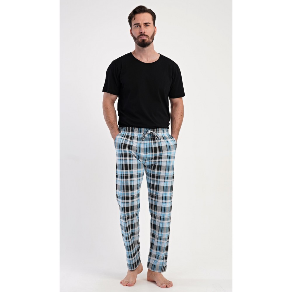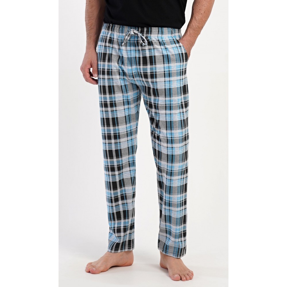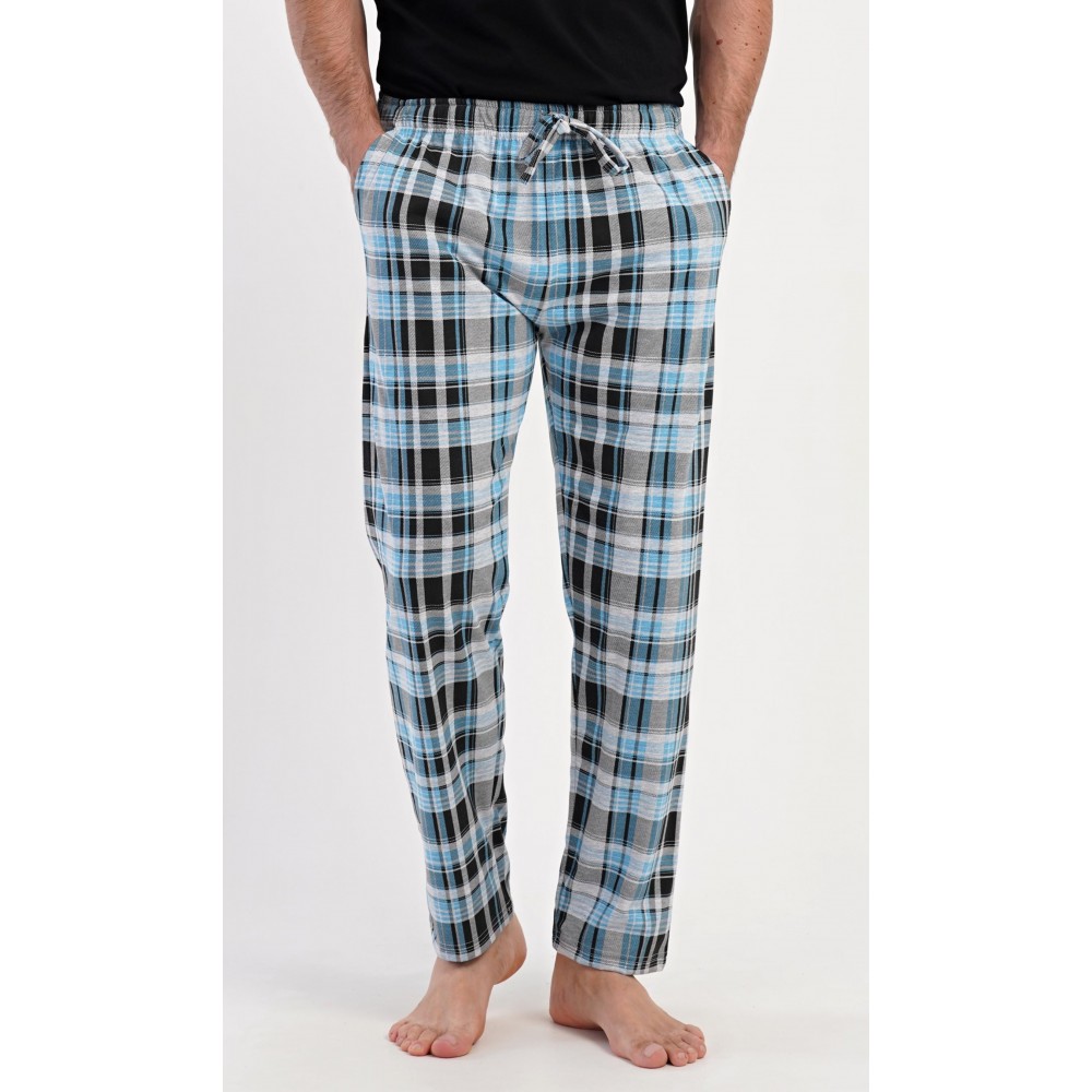 Pánské bavlněné pyžamové kalhoty Andrew. Kostkované kalhoty mají v pase gumu, šňůrku na stažení a praktické kapsy. Mateiriál s podílem bavlny 100% je příjemný a poddajný na dotek.