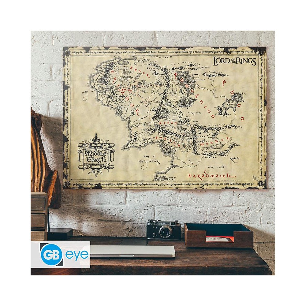 Každý pravý dobrodruh a milovník Pána prstenů ví, že cesta začíná mapou! Tento plakát mapy Středozemě (66 x 46 cm) je dokonalým doplňkem pro každého, kdo touží mít svůj vlastní kousek Tolkienova světa doma. Detailní zpracování mapy zachycuje všechny klíčové lokace známé z knih i filmů – od Hobitína, přes Roklinku a Minas Tirith až po temný Mordor. Plakát je vytištěn na kvalitním papíru s jemnými detaily. Skvělá dekorace na zeď do hobití nory, pracovny nebo knihovny!