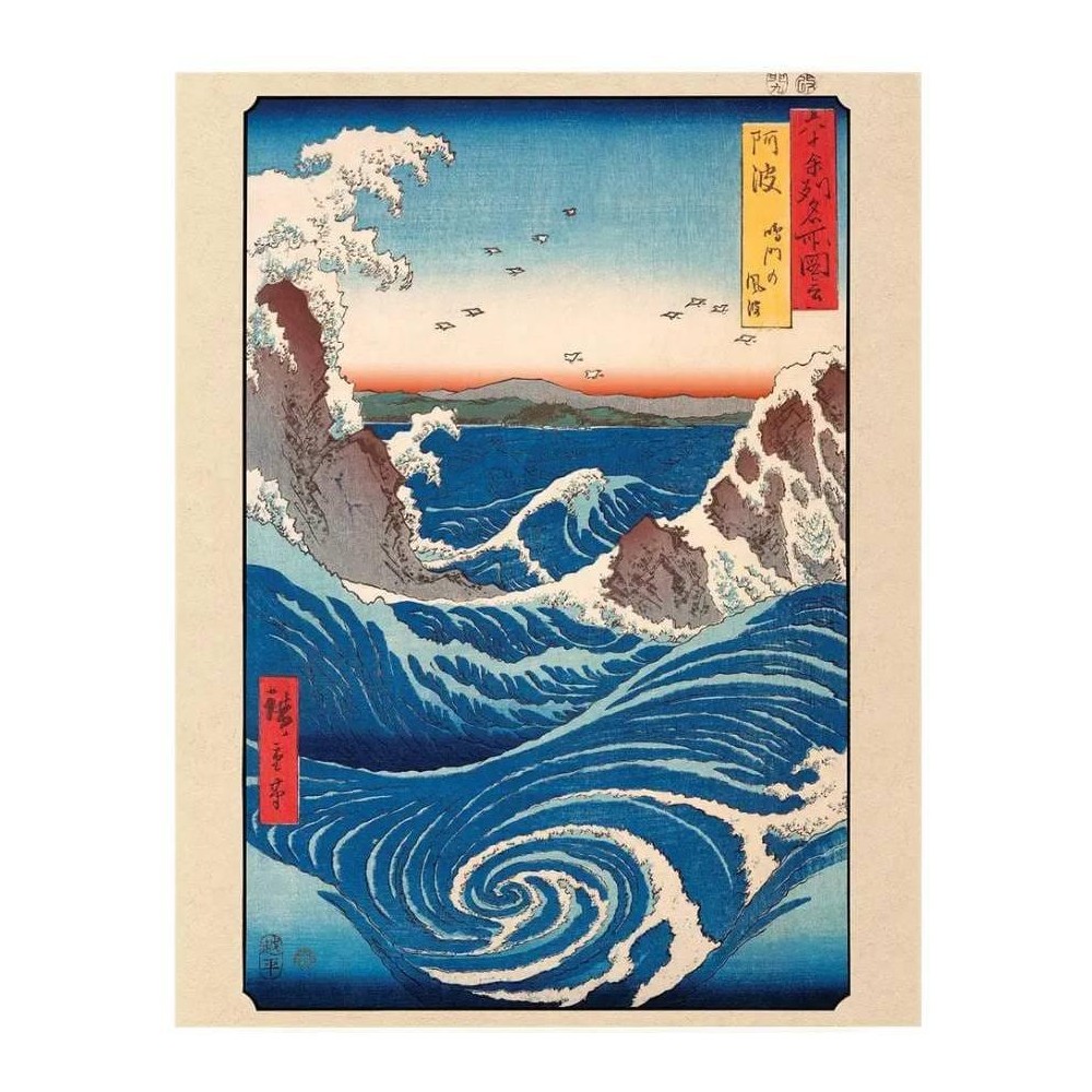 Oživ svůj interiér krásou tradičního japonského umění s reprodukcí slavného díla Naruto Whirlpool od mistra japonských dřevotisků Utagawy Hiroshigeho. Plakát zachycuje dramatické mořské víry v úžině Naruto. Dynamická voda a typická kompozice stylu ukiyo-e vytvářejí obraz plný pohybu, atmosféry a nadčasové estetiky. Hodí se do obývacího pokoje, pracovny, ložnice nebo kanceláře – zkrátka všude tam, kde chceš mít na stěně něco výjimečného! Formát 50 x 40 cm se snadno zarámuje do standardního rámu.