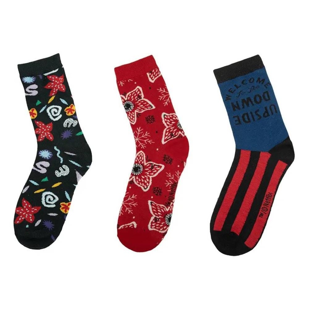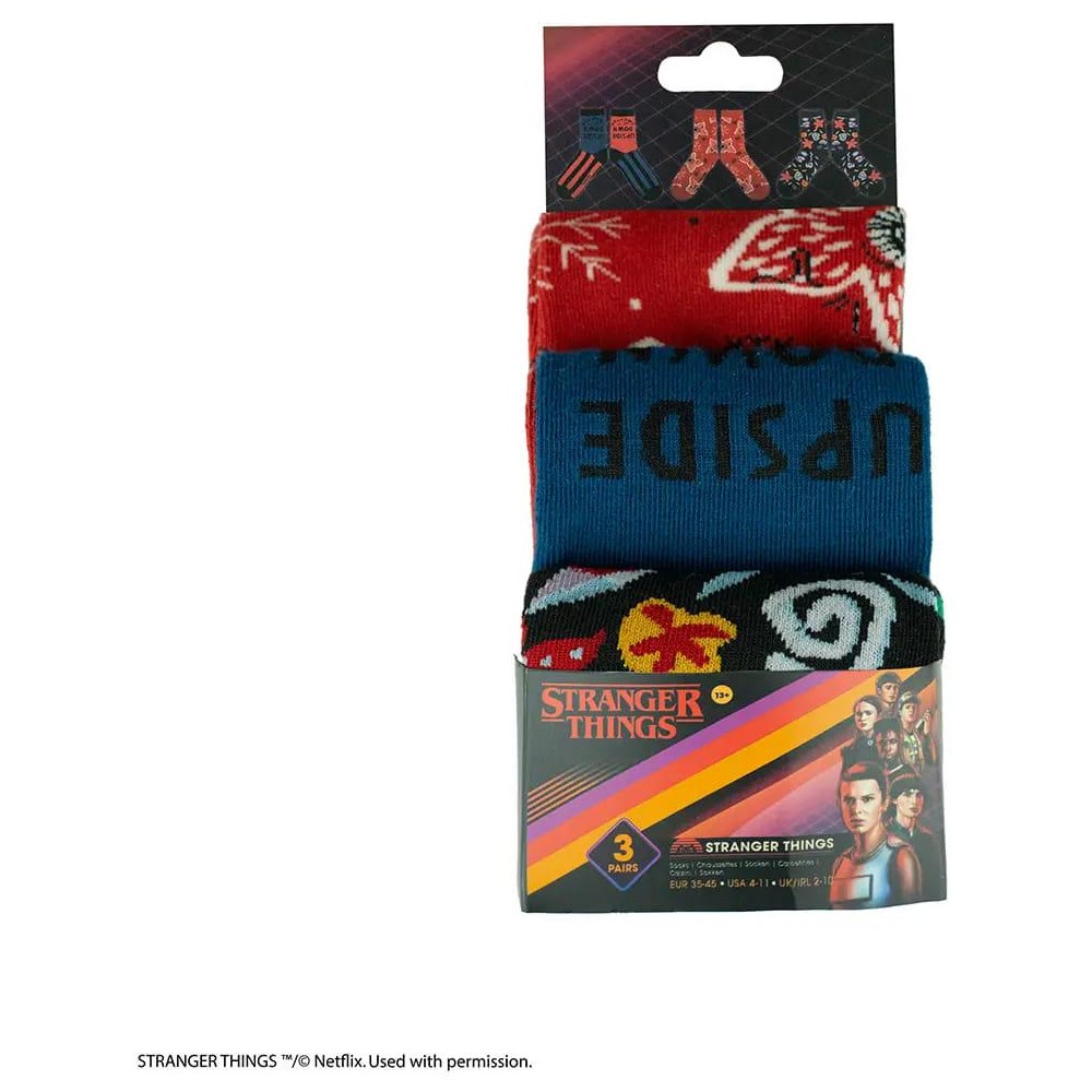 Vstup do světa Upside Down – a to rovnou ve stylových ponožkách! Tato sada 3 párů ponožek Upside Down přináší ikonickou temnou a retro atmosféru Stranger Things do každodenního života. Ponožky jsou vyrobené z kvalitního materiálu, pohodlné, pružné a odolné, ideální pro dlouhé dny plné dobrodružství nebo pohodové sledování Stranger Things doma. Univerzální velikost 35–45 zaručuje, že padnou většině dospělých i teenagerek a teenagerů.