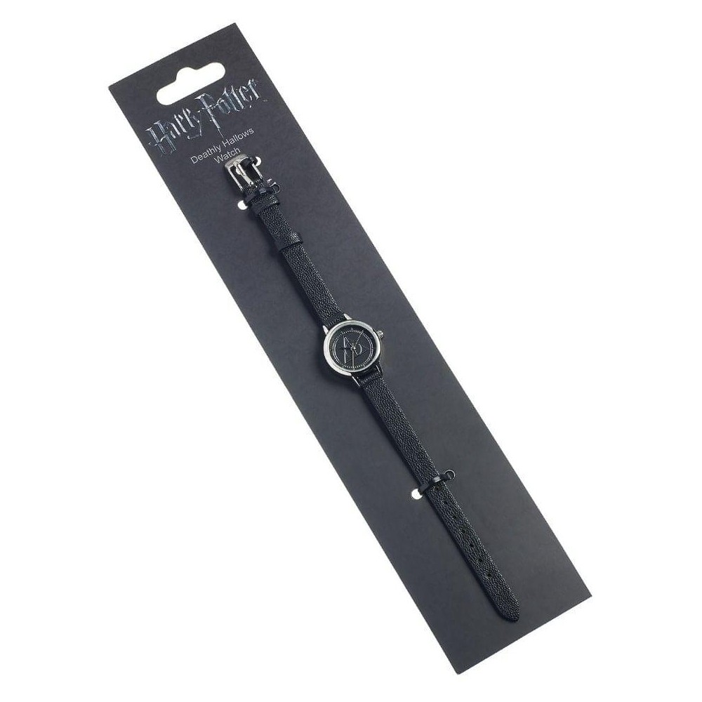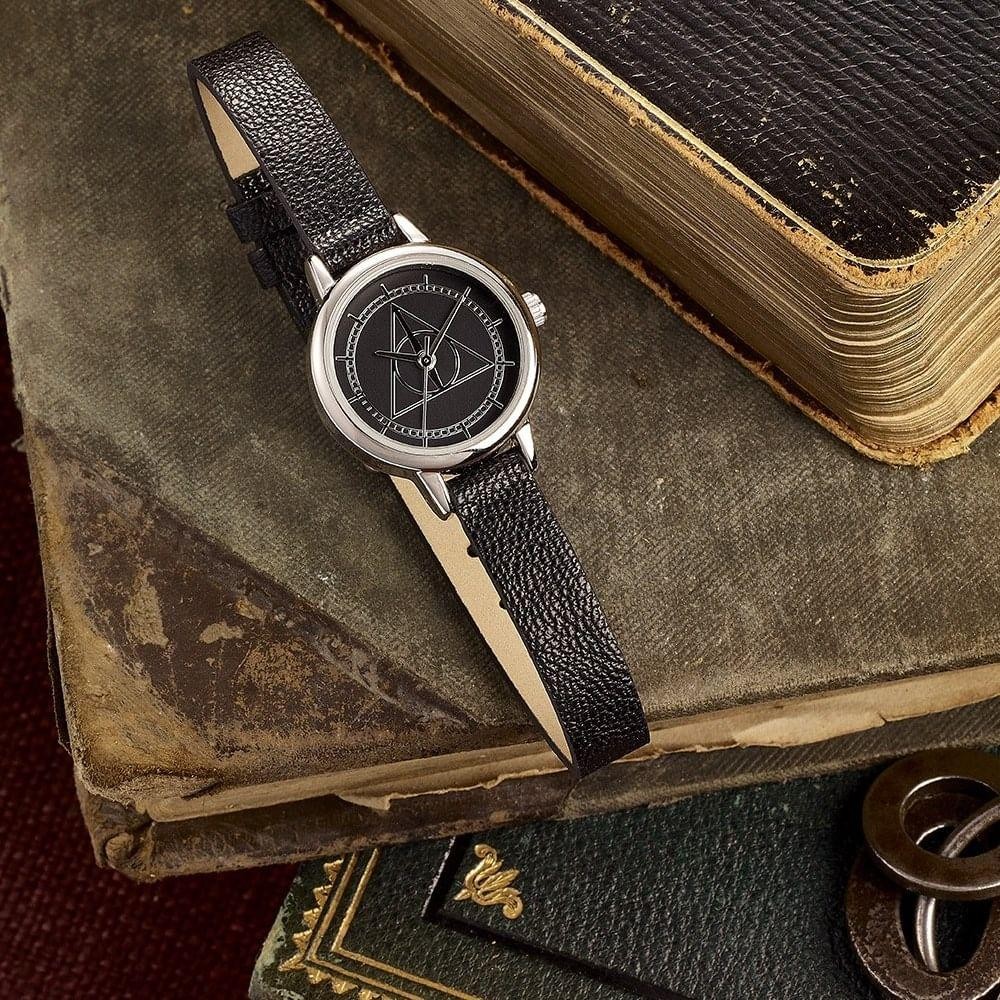 Stylové náramkové hodinky, jejichž ciferník je ozdoben znakem relikvií smrti z knih a filmů o čarodějnickém učni Harry Potterovi. Tyto hodinky budou krásným dárkem pro každého opravdového fanouška magického světa školy čar a kouzel v Bradavicích! Hodinky dodáváme v hezké dárkové krabičce, řemínek je nastavitelný a vyrobený z umělé kůže.