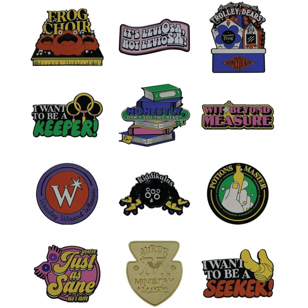 Tak toto je zaručeně kouzelné překvapení! ✨ V každé krabičce na tebe čeká 1 náhodný kovový odznak s ikonickou hláškou nebo logem z knih. Který si vytáhneš? „Weasley Wizard Wheezes“, „Riddikulus“ nebo třeba „I want to be a Seeker“? Celkem můžeš nasbírat 11 různých designů – a pokud budeš mít štěstí, objevíš i speciální zlatý odznak bystrozora Ministerstva kouzel! Perfektní doplněk na batoh, bundu nebo do sbírky.