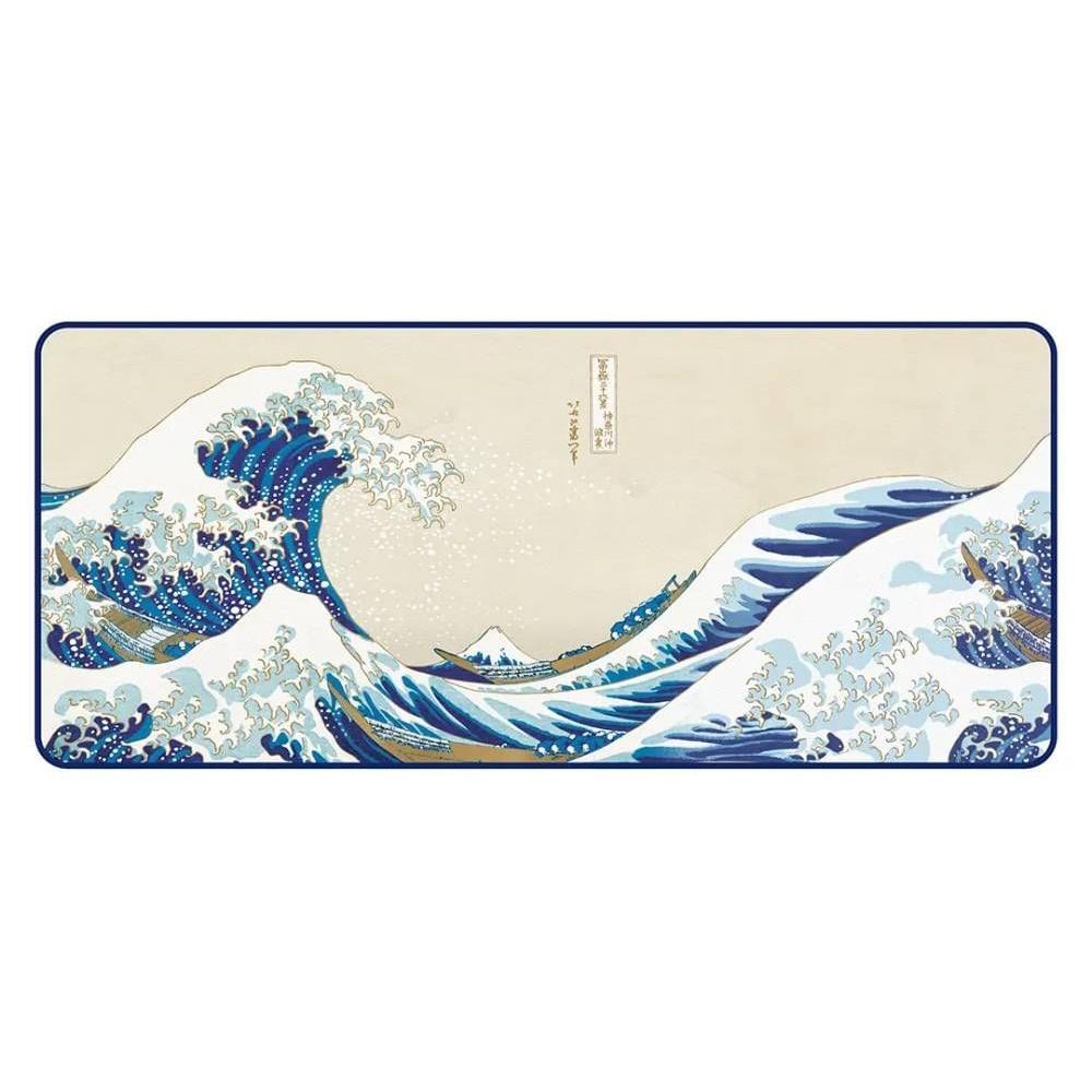 Tvůj herní stůl už nemusí být nudný! Proměň ho v malou galerii díky XL podložce s legendárním japonským uměním – Velká vlna u pobřeží Kanagawy od Hokusaie. Rozměr podložky je 80 x 35 cm, takže se skvěle hodí pro myš i klávesnici Vyrobena z odolného neoprenu, díky kterému skvěle drží tvar, neklouže po stole a je příjemná na dotek.
