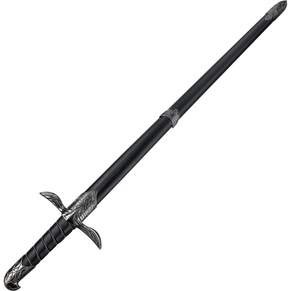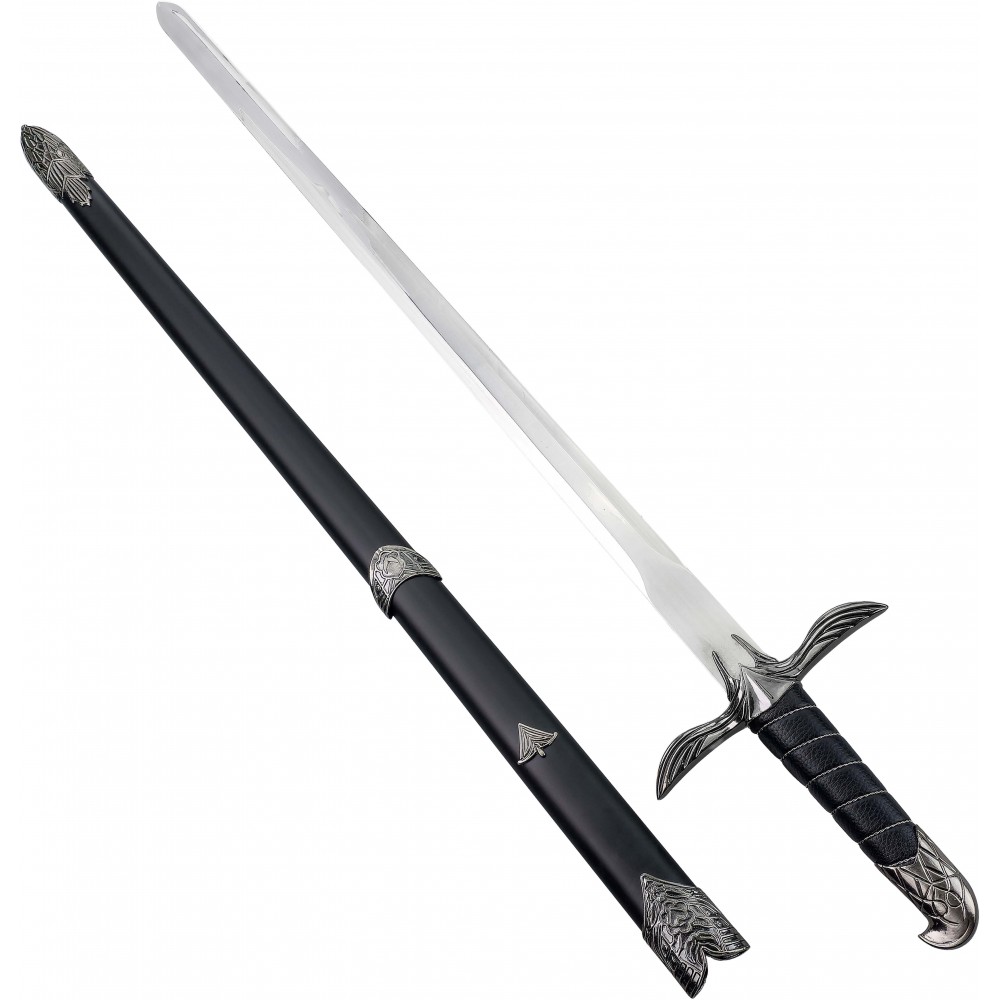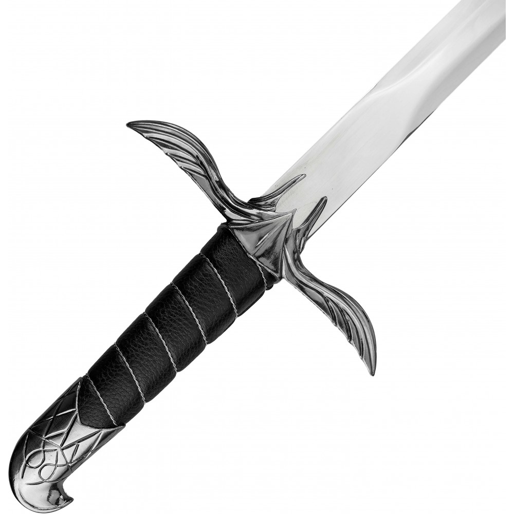 Meč dosahuje celkové délky 96 cm a váží přes 1,3 kg včetně pochvy. Samotná čepel měří 70 cm a díky nerezové oceli působí masivně a odolně. Rukojeť je pevná a pohodlně se drží, zdobená elegantním vzorem a černým omotem, který navozuje autentický vzhled dle herní předlohy. Nedílnou součástí je také dřevěná pochva s kovovým povrchem a zdobnými prvky, které podtrhují výpravný charakter zbraně a dodávají jí majestátní vzhled.
