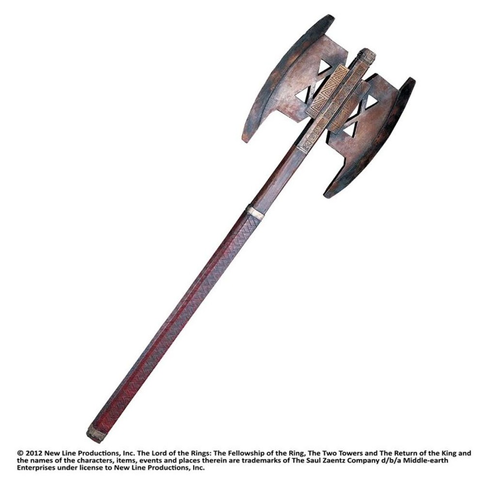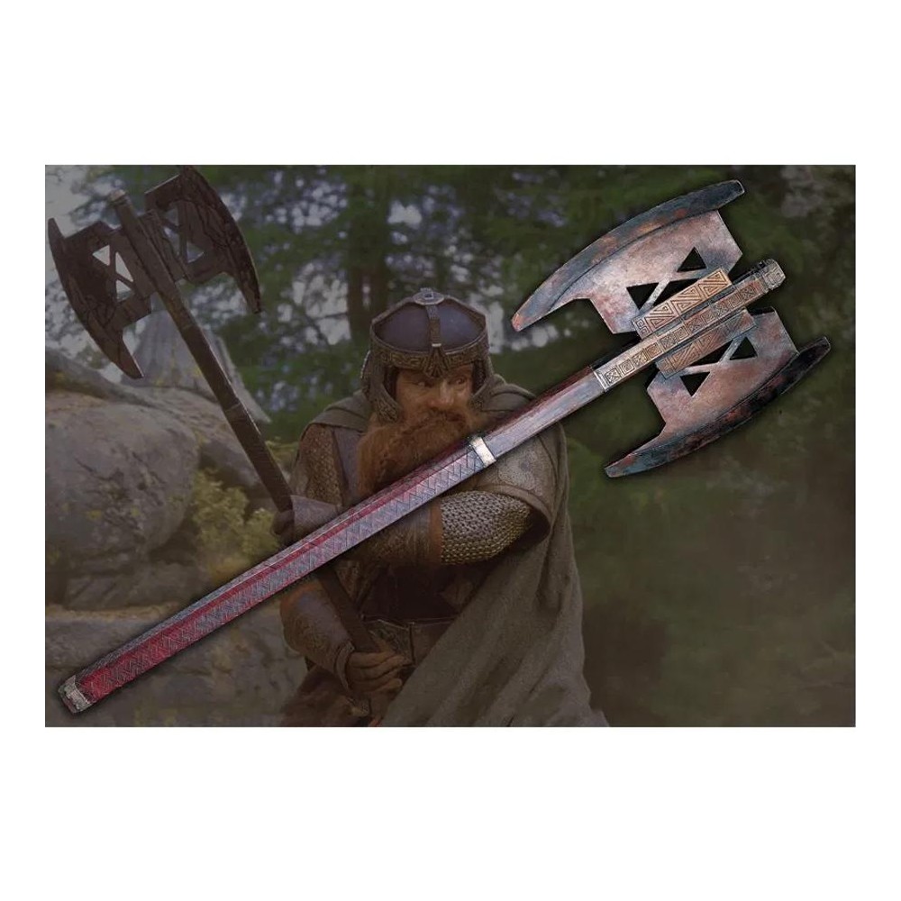 Nádherná replika obouruční sekery trpaslíka Gimliho z filmové trilogie Pán prstenů se vyznačuje neuvěřitelně precizními detaily. Díky použití originálních materiálů se jedná o autentický sběratelský předmět.