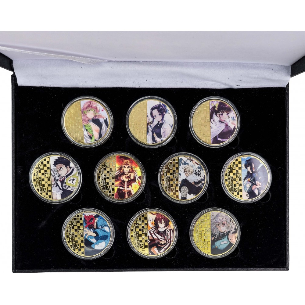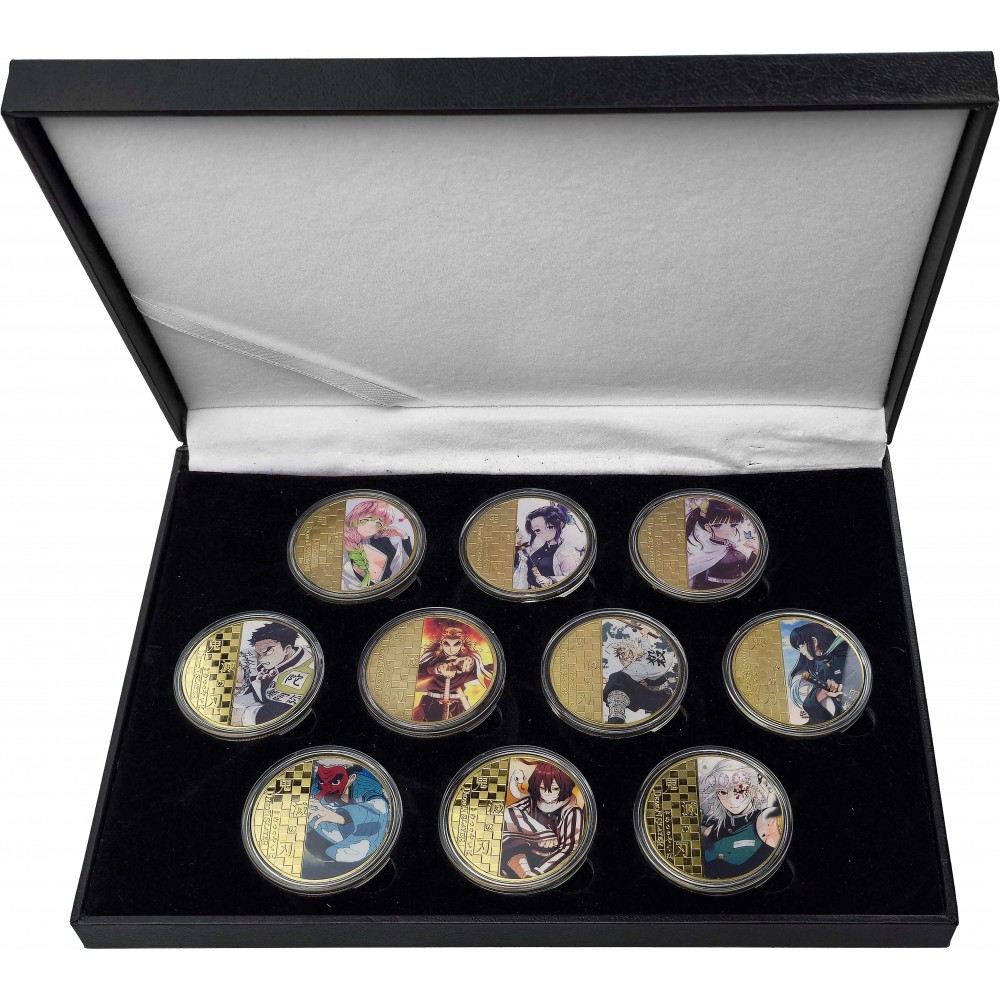 Na mincích najdete oblíbené postavy ze série – výjimečné členy Hashira: elegantní Shinobu Kocho, silného Tengena Uzui, charismatického Kyojura Rengoku či neústupného Giyu Tomioku. Nechybí ani další výrazní hrdinové a bojovníci Demon Slayer Corps, kteří dohromady tvoří nezapomenutelný tým proti armádám démonů.