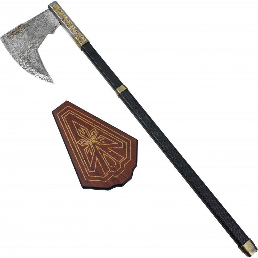 Sekera „GIMLI’S AXE“ je luxusní dekorativní replika, jejíž hlavice je vyrobena z nerezové oceli, doplněné o detaily ze slitiny hliníku. Každý detail, od zdobených rytin až po proporce čepele, byl navržen tak, aby odpovídal filmové verzi z trilogie Pána prstenů (LOTR).