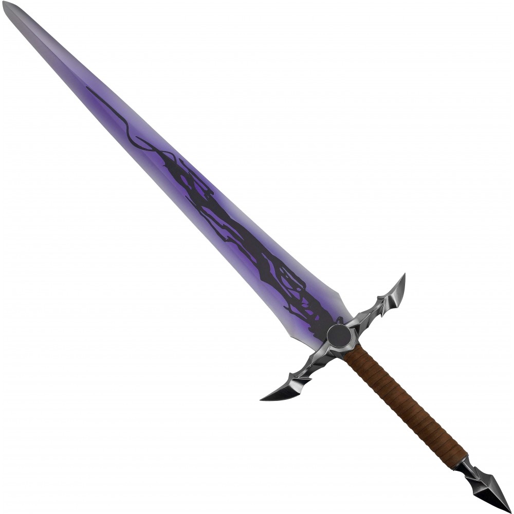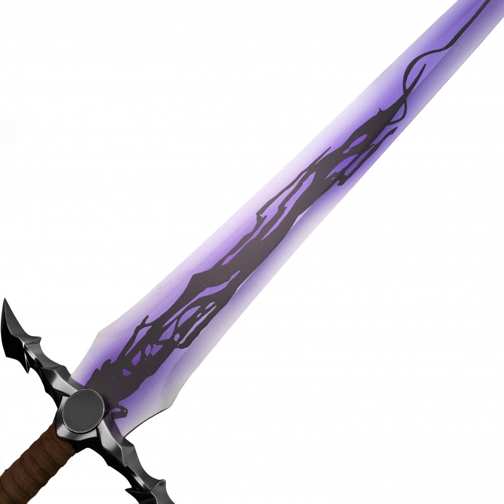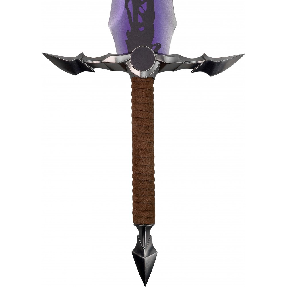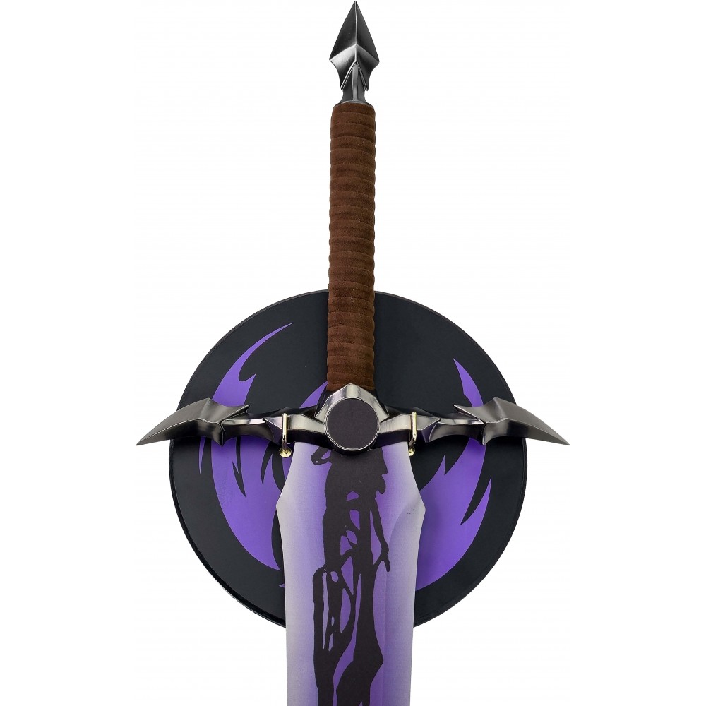 Masivní konstrukce kombinuje nerezovou ocel s fialovým přechodem a černými runami, které evokují magickou auru démonické síly. Čepel je tupá, avšak díky svému tvaru a délce působí mimořádně autenticky. Rukojeť s tkaninovou omotávkou perfektně padne do ruky a spolu s záštitou a hlavicí z hliníkové slitiny dodává meči ideální rovnováhu. Součástí je dřevěná plaketa pro zavěšení na stěnu, díky které se meč stane dominantou každé sbírky.