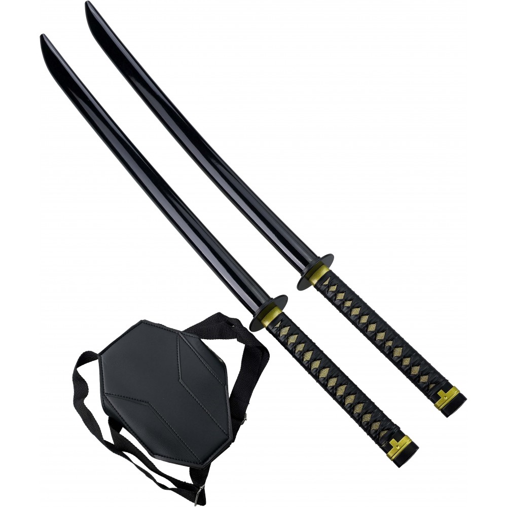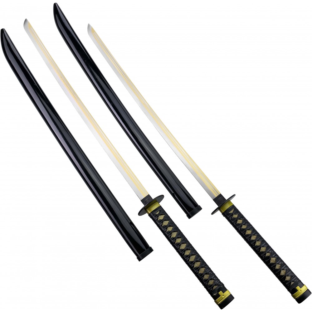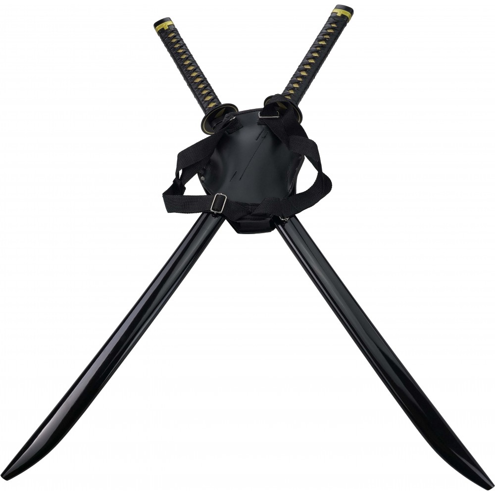 Čepele jsou vyrobeny z uhlíkové oceli a nejsou ostřené, díky čemuž jsou vhodné pro cosplay, výstavní účely či filmové rekvizity. Dřevěné pochvy saya jsou lakované do lesklého černého odstínu, zatímco rukojeti tsuka jsou obalené černou tkaninou s detaily ve zlaté barvě. Kovové záštity tsuba podtrhují jejich autentický vzhled a přidávají na realistickém dojmu.