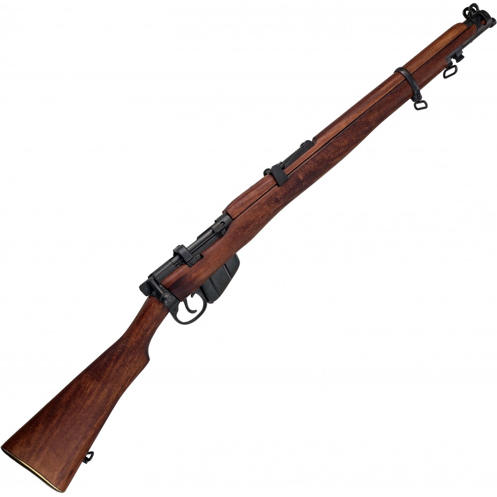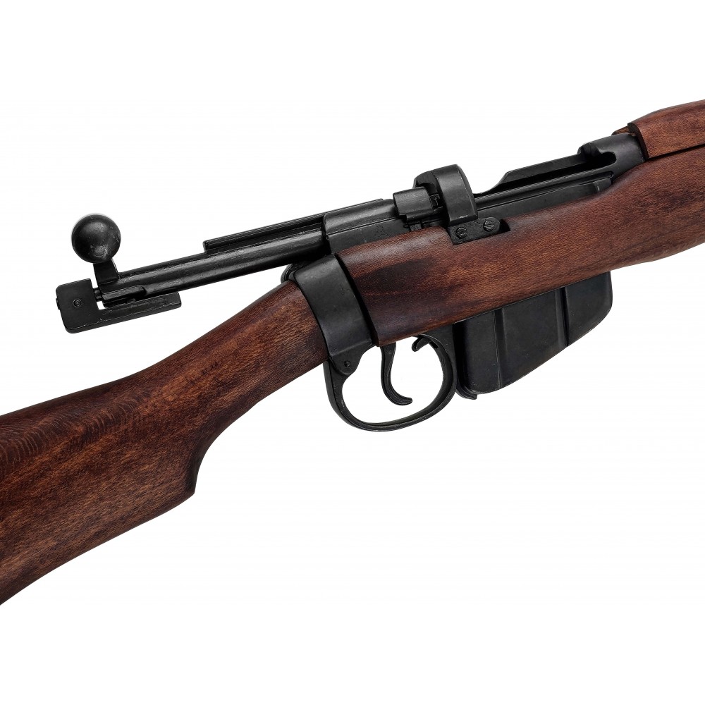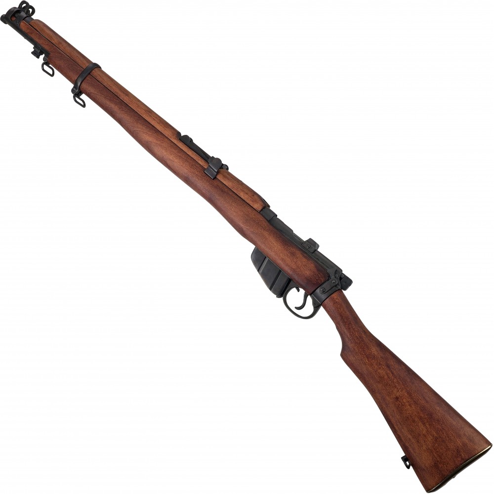 Detailně zpracovaná replika pěchotní pušky Lee Enfield No.1 Mk III od renomovaného výrobce Denix představuje věrnou kopii slavné britské opakovací pušky, která sloužila jako hlavní výzbroj britských a spojeneckých vojsk během první i druhé světové války. Model Mk III, zavedený v roce 1907, vynikal robustností, spolehlivostí a nadprůměrnou kadencí střelby, díky čemuž se zařadil mezi nejúspěšnější vojenské pušky své doby.