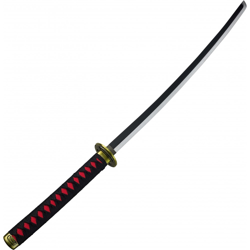 Design připomínající drsnou energii Genyi. Ostré linie čepele, černo-červené vzory tsuky a kontrastní bílá dřevěná pochva vytvářejí výraz, který působí přesně jako z anime Demon Slayer.