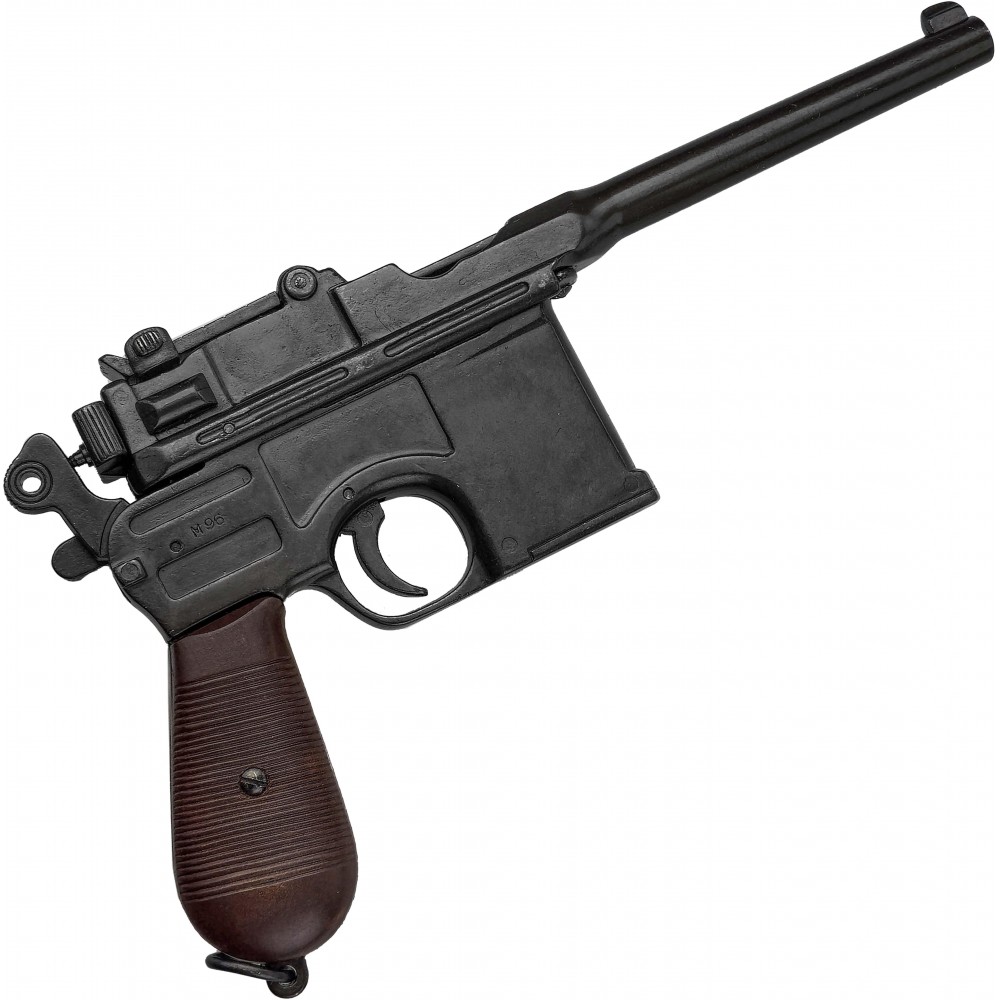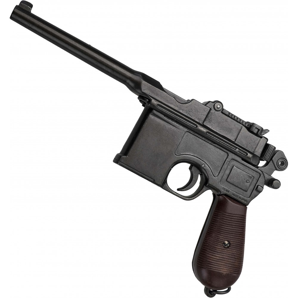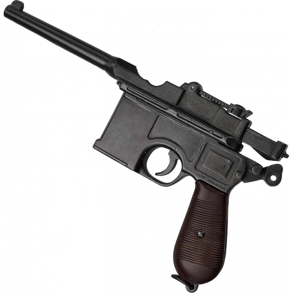 Detailně zpracovaná replika legendární pistole Mauser C96, známé také jako „Broomhandle Mauser“, kterou německá armáda začala používat koncem 19. století. Tento model je určen pro dekorační a sběratelské účely, je plně nefunkční a neumožňuje střelbu.