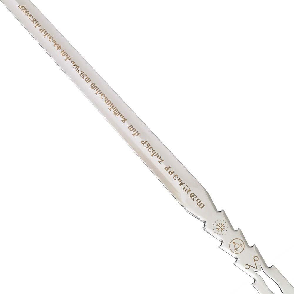 Replika „ZIRAEL V2“ představuje vylepšené a detailní zpracování meče, který nosí Ciri ve světě Zaklínače. Tupá čepel z nerezové oceli s charakteristickým rytím působí elegantně a zároveň bojově, zatímco kovová záštita se třemi rameny dodává meči nezaměnitelný vzhled. Dřevěná rukojeť potažená kvalitní eko-kůží nabízí pevný a příjemný úchop, díky kterému meč působí stabilně a výrazně.