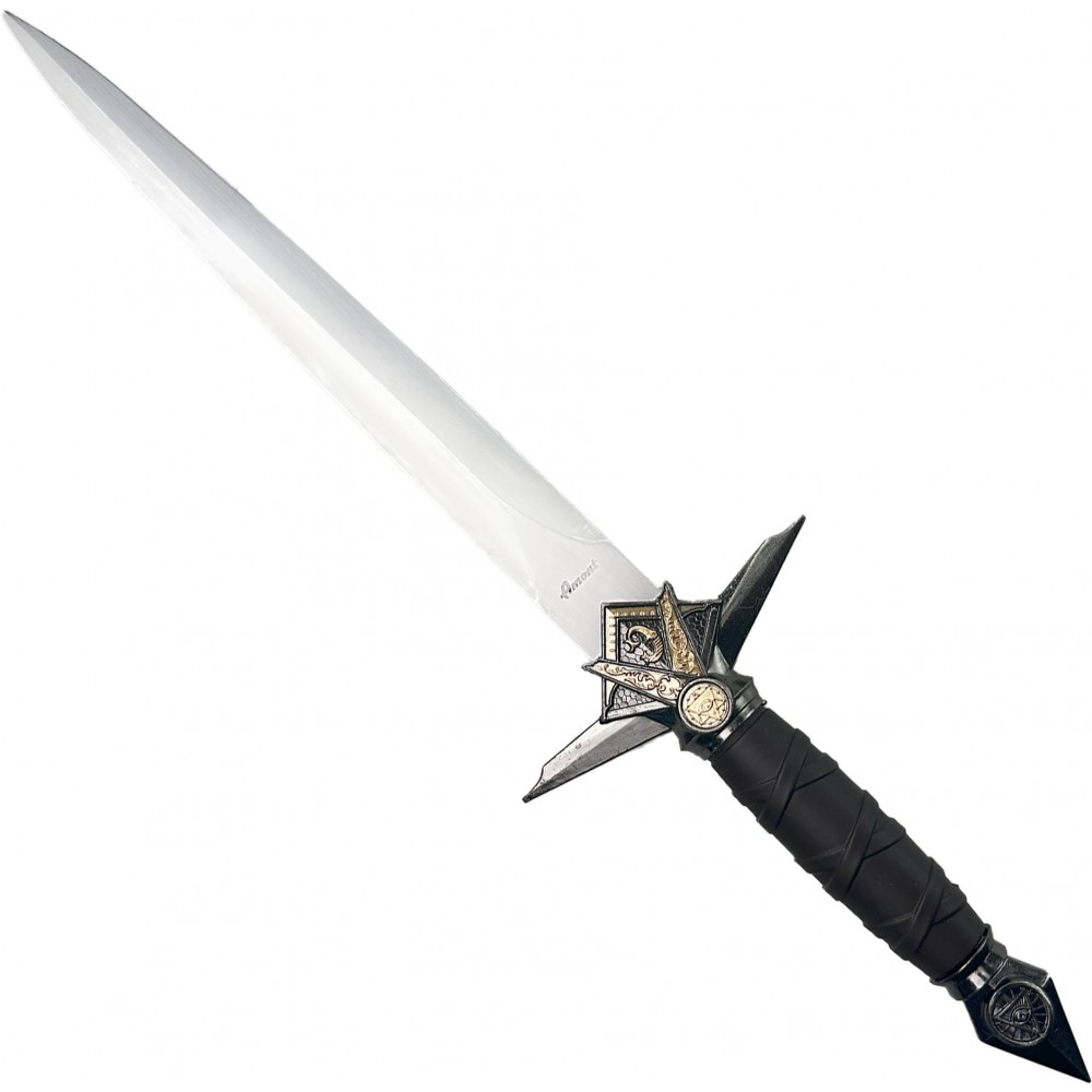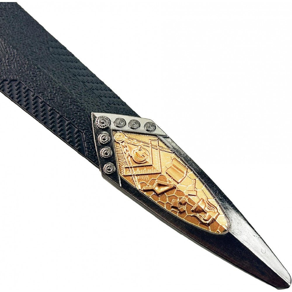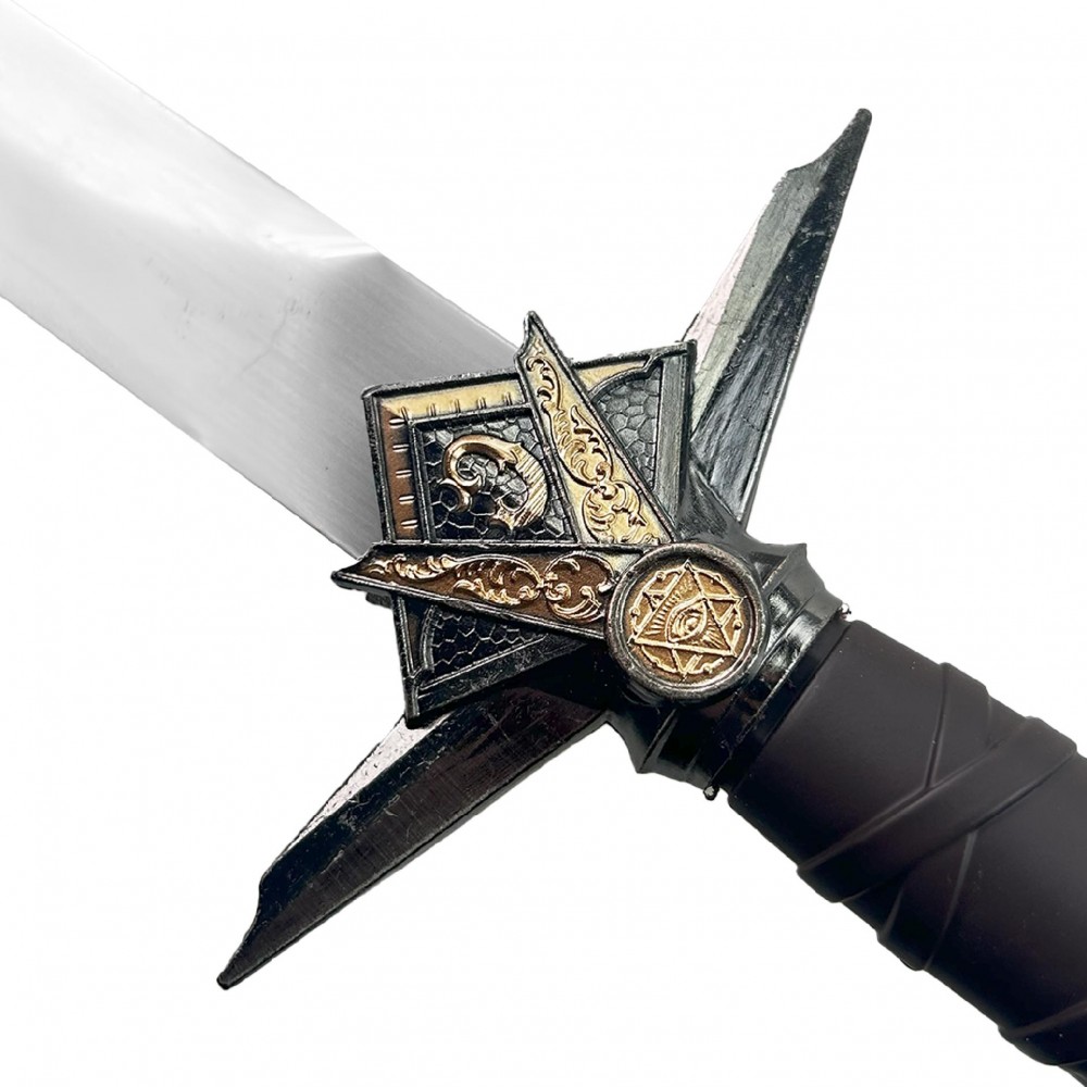 Tato impozantní dekorativní dýka s bohatě zdobenou záštitou a hlavicí je inspirována symbolikou Svobodného zednářství – tajemného bratrstva opředeného mýty a legendami sahajícími až do středověku. Dominantními motivy jsou Boží oko (vševidoucí oko) a tradiční zednářské insignie jako kružítko s úhelníkem a zlatý sluneční paprsek – symbol osvícení a vědění.
