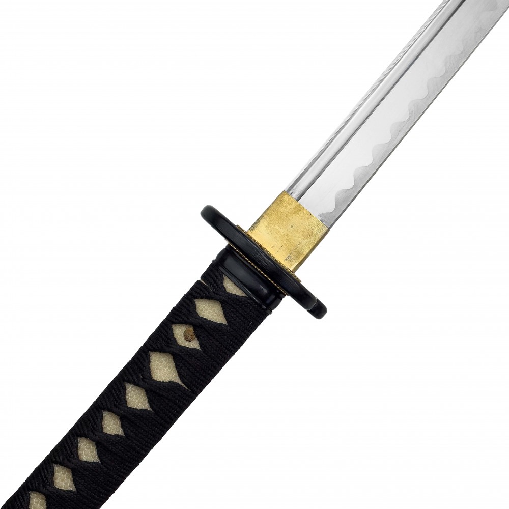 Čepel je vyrobena z nerezové oceli a není ostřená, hrana ostří má přibližně 2,2 mm, přesto je zachována ostrá špička (kissaki), která vyžaduje opatrnou manipulaci. Výrazný žlábek (bo-hi) vytváří při správném seku charakteristický zvuk, který pomáhá kontrolovat správnou techniku vedení čepele. Záštita (tsuba) je vyrobena z hliníkové slitiny, rukojeť (tsuka) obsahuje pravou rejnočí kůži (samegawa) pod opletem (tsuka-ito) a konstrukce je plně rozebíratelná díky klasickým kolíčkům (mekugi). Pochva (saya) je dřevěná s černým lakováním a doplněná tradiční šňůrou (sageo).