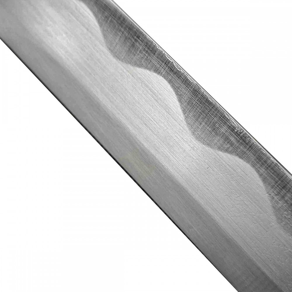 Čepel je vyrobena z vysoko uhlíkové oceli 1060 a má tupé ostří o šířce přibližně 2,5 mm, což zvyšuje bezpečnost při kontaktu s jinou zbraní. Špička (kissaki) je upravena bez ostrého zakončení. Záštita (tsuba) je vyrobena z hliníkové slitiny a rukojeť (tsuka) obsahuje pravou rejnočí kůži (samegawa) pod opletem (tsuka-ito) pro pevný a jistý úchop. Konstrukce je plně rozebíratelná pomocí tradičních kolíčků (mekugi). Pochva (saya) je dřevěná s černým lakováním a doplněná závěsnou šňůrou (sageo).