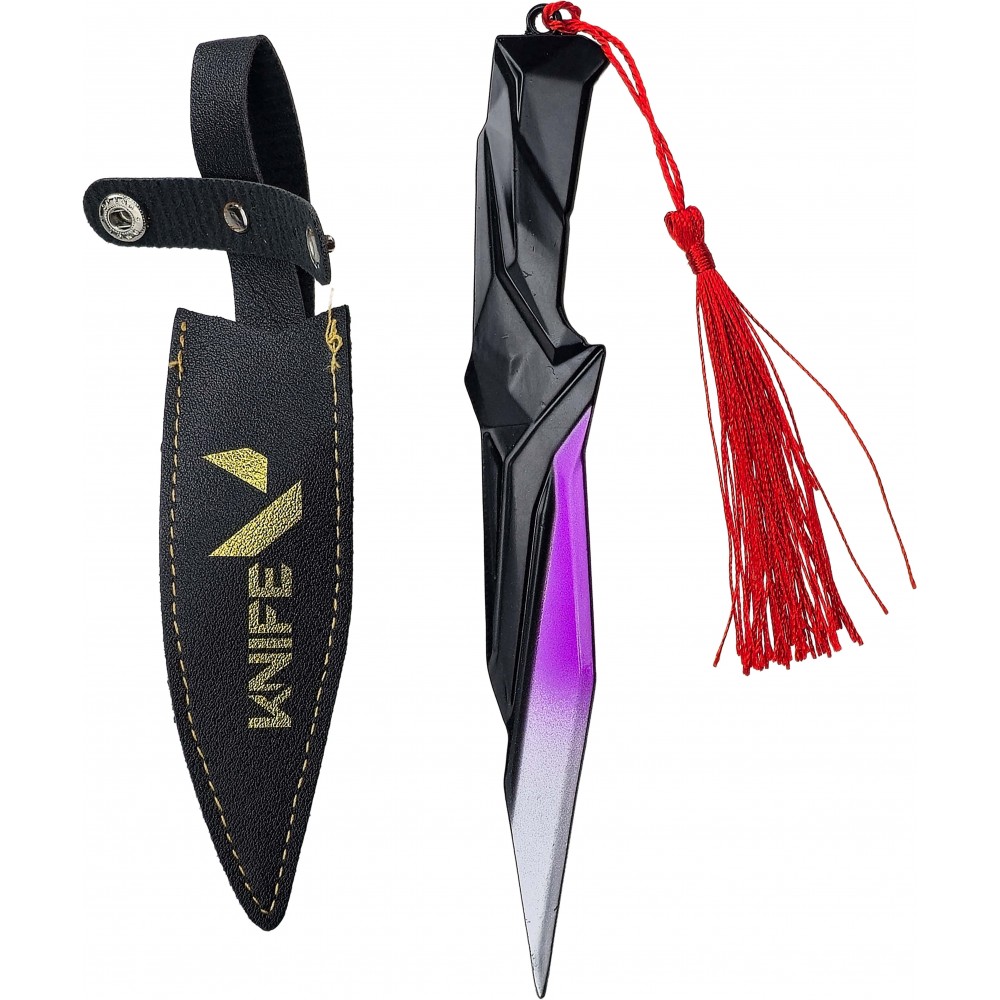 Malý pevný nůž Singularity Knife převádí do reálné podoby výrazný design inspirovaný skin linkou Singularity ze hry Valorant. Černofialové provedení působí futuristicky, čistě a na první pohled odkazuje na herní předlohu, takže si tenhle kousek snadno najde místo ve vitríně, na polici i jako doplněk ke cosplayi. Díky kompaktní velikosti nepůsobí přehnaně, ale stále má dost osobitosti, aby ve sbírce nezapadl.