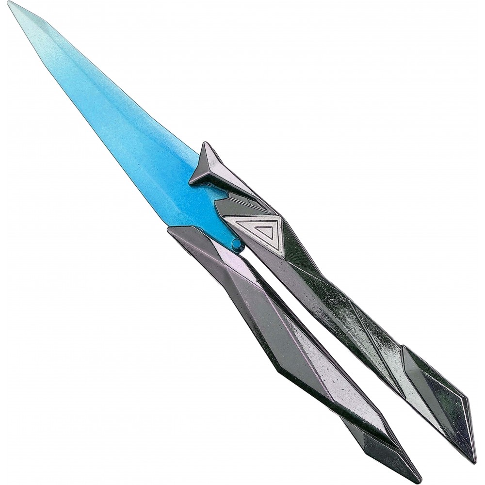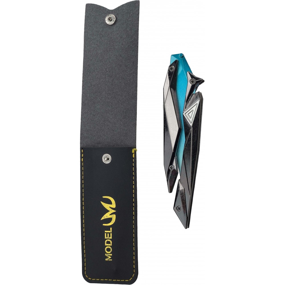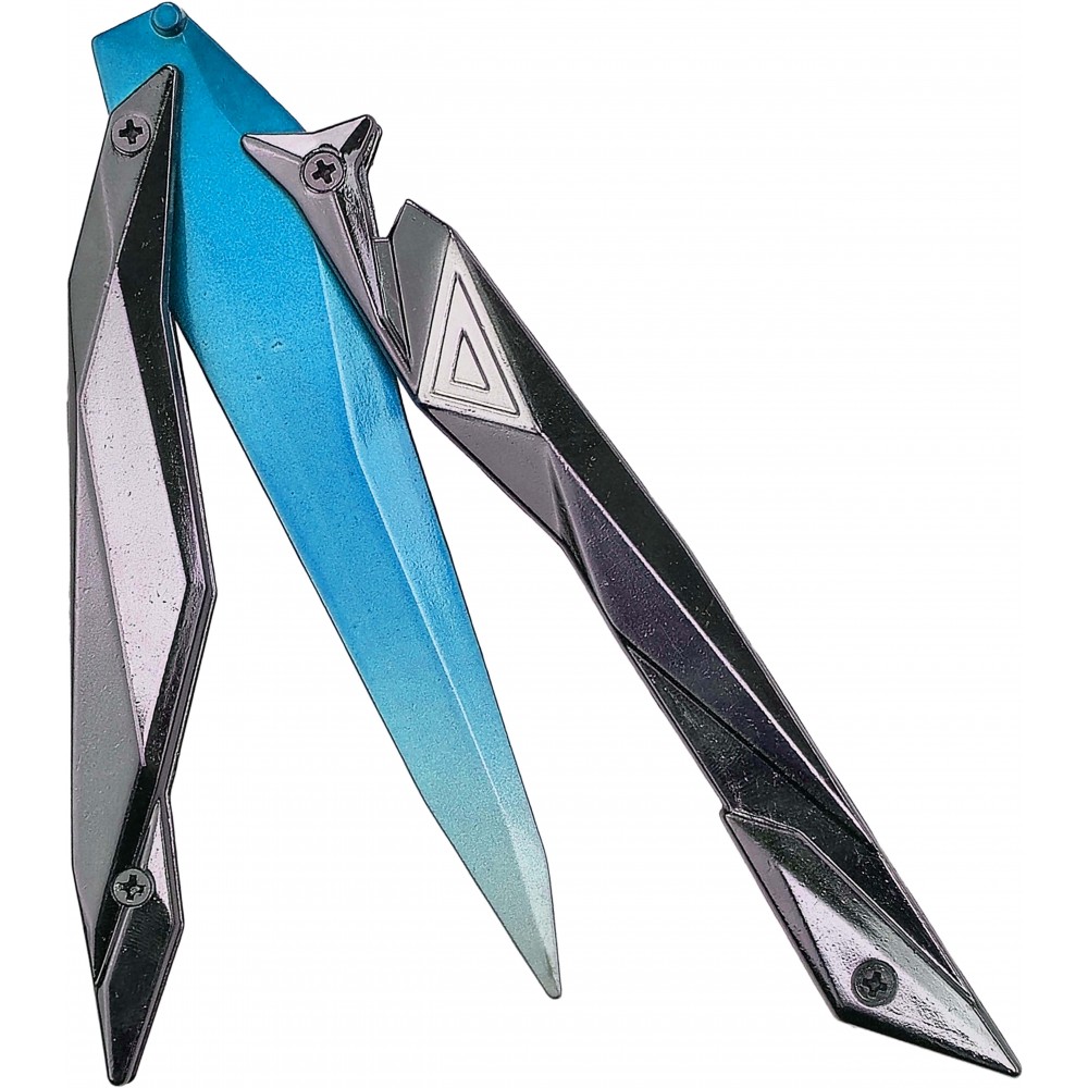 Kovový motýlek Singularity Butterfly Knife převádí do reálné podoby jeden z nejvýraznějších nožů inspirovaných Valorantem. Modrá čepel v kombinaci s tmavým futuristickým tělem působí velmi efektně a okamžitě připomene estetiku skin linky Singularity. Ve sbírce herních replik jde o kousek, který umí přitáhnout pozornost už na první pohled a dobře vynikne i jako doplněk ke cosplayi nebo výstavce.