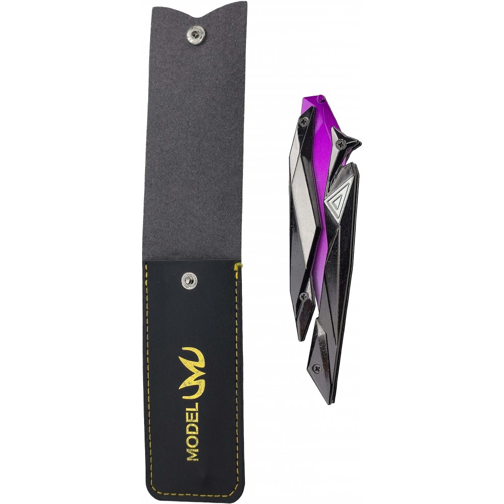 Kovový motýlek Singularity Butterfly Knife převádí do reálné podoby jeden z nejvýraznějších nožů inspirovaných Valorantem. Fialová čepel v kombinaci s tmavým futuristickým tělem působí velmi efektně a okamžitě připomene estetiku skin linky Singularity. Ve sbírce herních replik jde o kousek, který umí přitáhnout pozornost už na první pohled a dobře vynikne i jako doplněk ke cosplayi nebo výstavce.