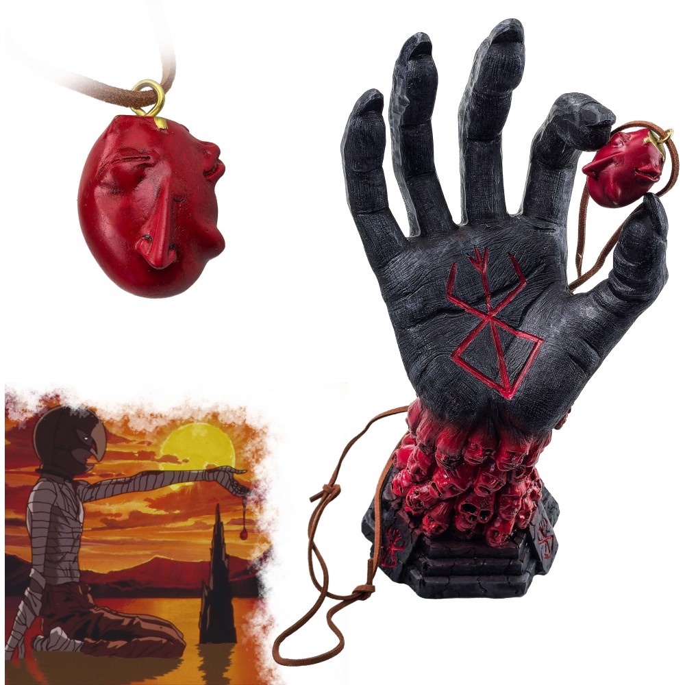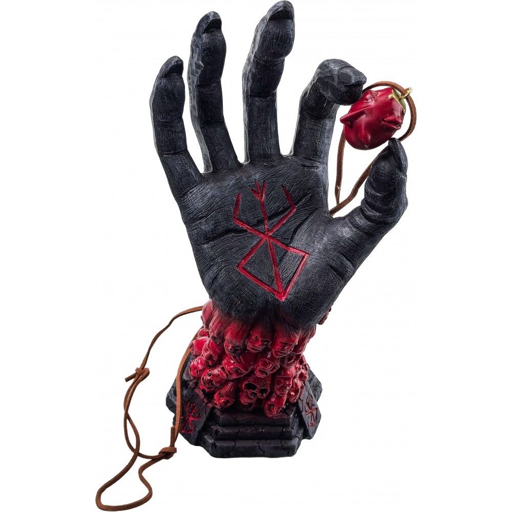 Výstavní soška God Hand, která je inspirována legendárním anime/mangou BERSERK. Tato jedinečná soška je vyrobena z kvalitní pryskyřice a její rozměry dosahují 25 cm. God Hand není jen obyčejnou soškou, ale může se stát i luxusním držákem na šperky. Jeden takový šperk je i v balení a to v podobě náhrdelníku, na kterém visí Beherit.