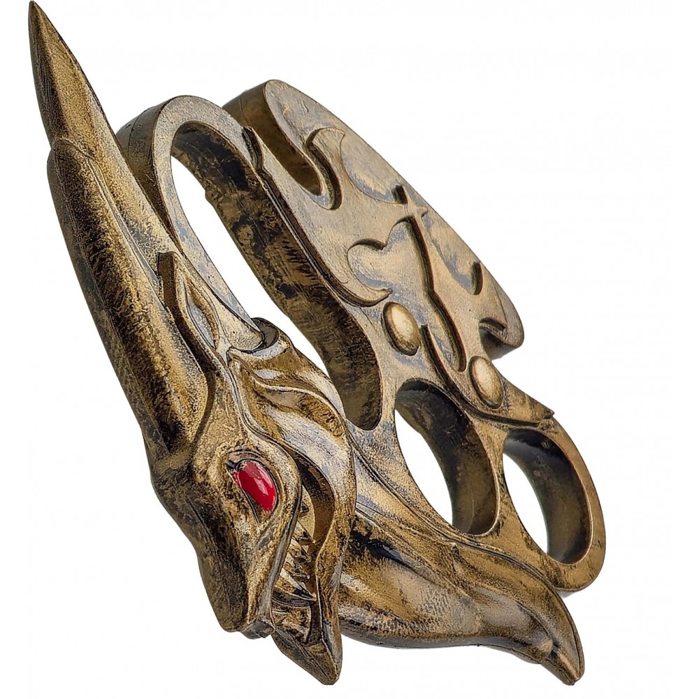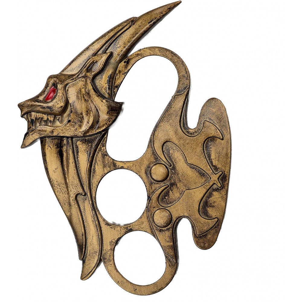 Zpracování vychází z herní předlohy a zachovává charakteristické tvary i ornamentální detaily. Konstrukce z odolného ABS plastu zajišťuje nízkou hmotnost a zároveň dostatečnou pevnost pro nošení při cosplay akcích nebo focení. Povrchová úprava imituje kovový vzhled se zlatavou patinou a dekorativními prvky, které zvýrazňují fantasy styl inspirovaný herním světem Runeterry.