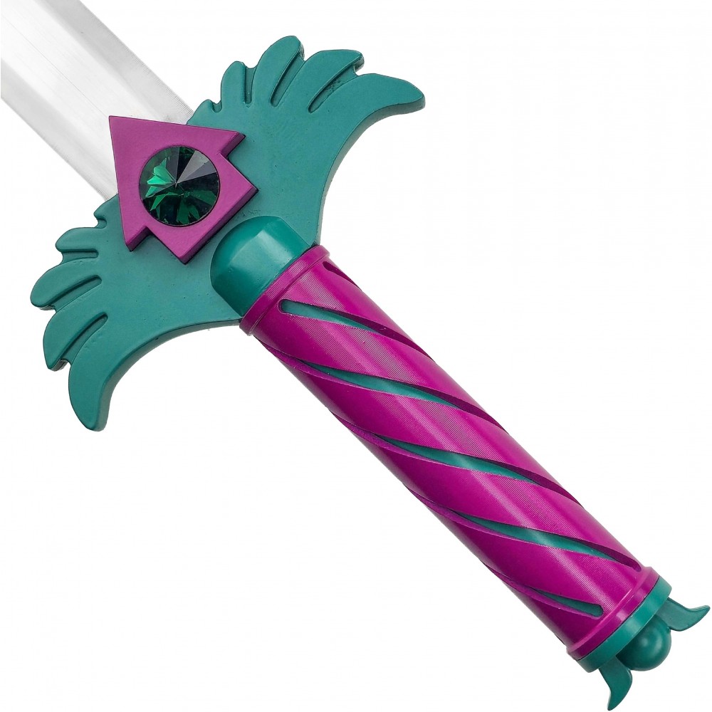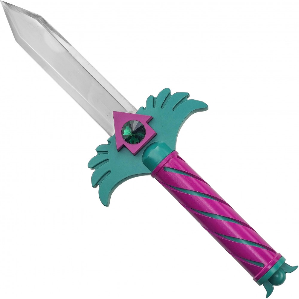 Celokovová konstrukce zajišťuje pevnost a realistický pocit při držení. Čepel z nerezové oceli je z výroby neostřená a určená výhradně pro výstavní účely. Rukojeť i záštita jsou rovněž kovové a doplněné výraznými barevnými prvky odpovídajícími stylizaci známé ze seriálu. Zpracování klade důraz především na vizuální věrnost a dekorativní hodnotu.