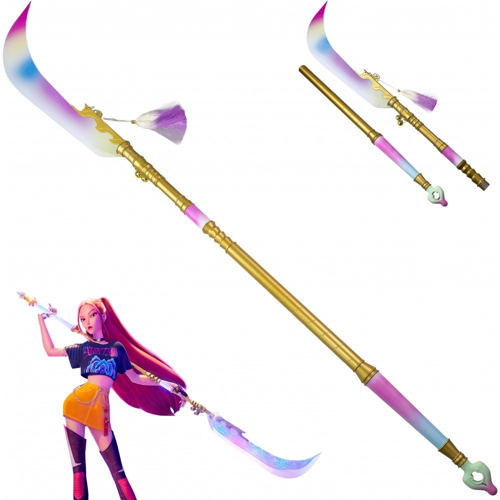 Tyčová zbraň inspirovaná Mirou ze světa Kpop Demon Hunters vychází z jejího rychlého a akrobatického stylu boje, který kombinuje eleganci idol vystoupení s efektivním bojem proti démonům. Ve stejné skupině lovců působí také Rumi a Zoey, přičemž každá z nich používá vlastní typ zbraně odpovídající jejím schopnostem a osobnosti. Výrazné barevné provedení a zakřivená čepel odpovídají stylizaci známé z tohoto korejského fantasy světa.