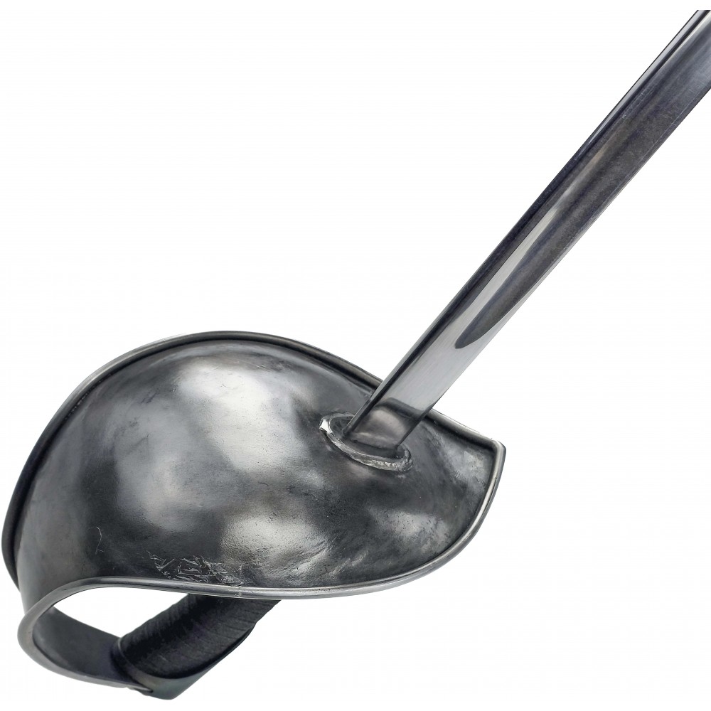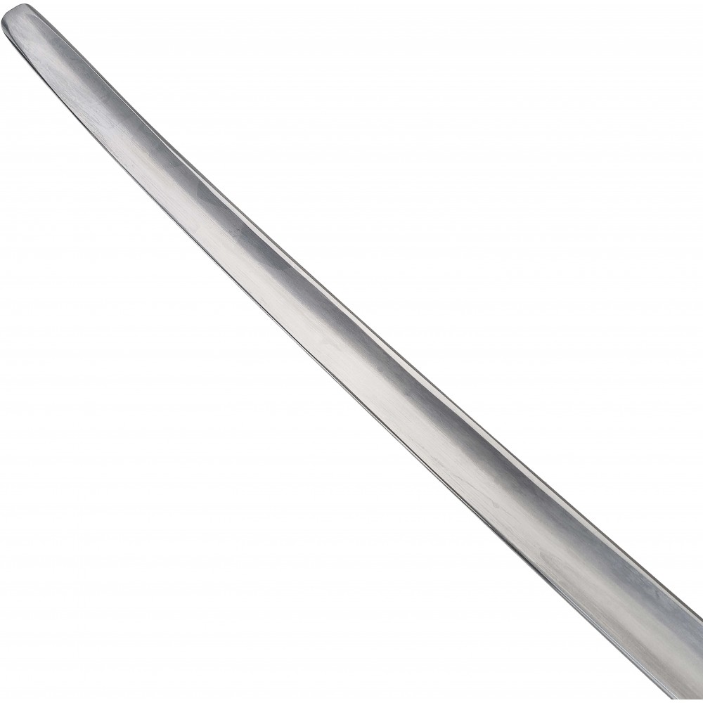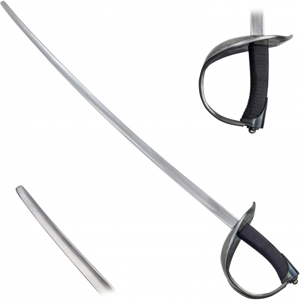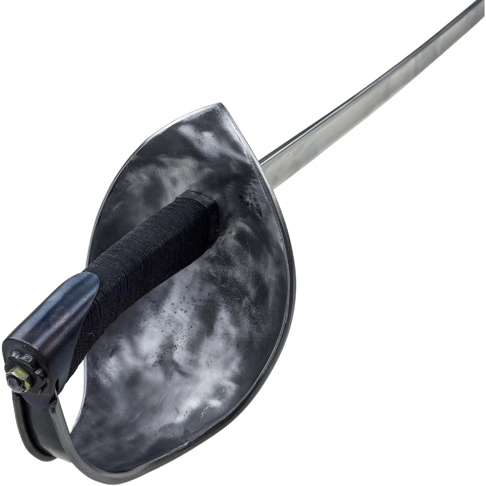 Čepel je vyrobena z pružinové oceli 1075, která dobře snáší opakované nárazy a zachovává si pružnost. Hrany nejsou ostré a profil čepele je uzpůsoben pro bezpečný kontakt při šermu. Tloušťka čepele okolo 5,5 mm dodává pevnost při zásazích, zatímco hmotnost zůstává vyvážená pro delší trénink bez zbytečné únavy. Košová záštita chrání ruku při krytech a kontaktech, látková omotávka rukojeti zajišťuje jistý a stabilní úchop.