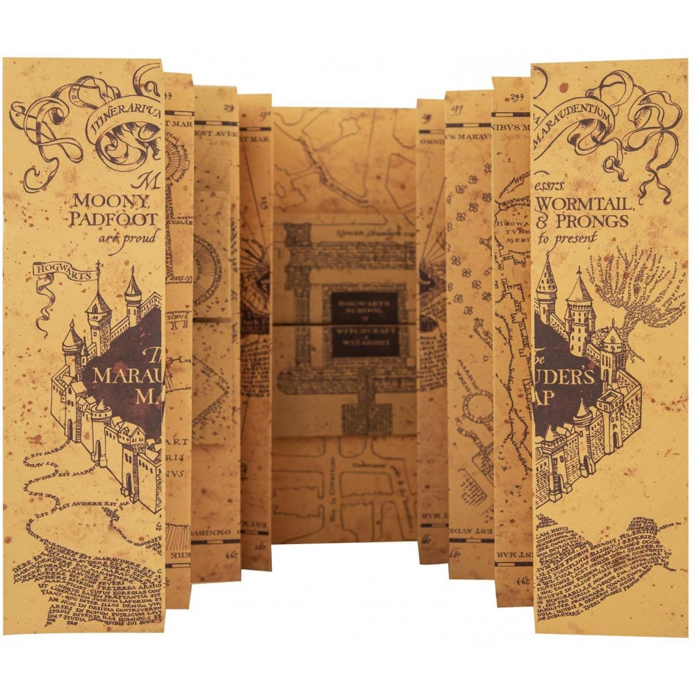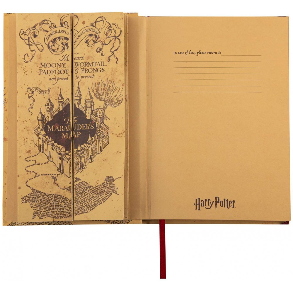 Linkovaný zápisník s Pobertovým plánkem ti umožní zaznamenat si všechna tajemství, která jsi objevil nejen v Bradavicích. Uvnitř najdeš zmenšenou repliku Pobertova plánku (známého z filmů o Harrym Potterovi) s úžasnou grafikou a detaily. Elegantní, snadno přenosný zápisník potěší všechny fanoušky Harryho Pottera.