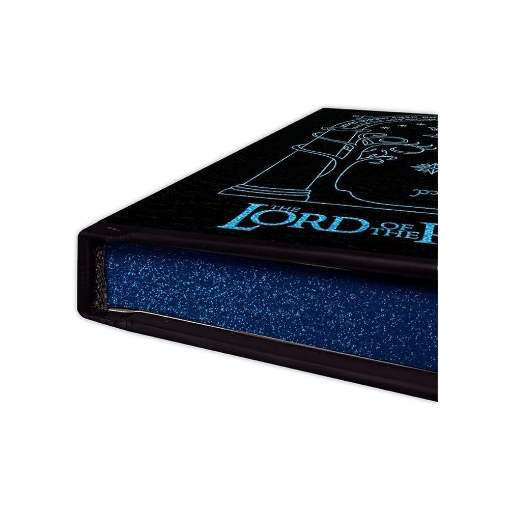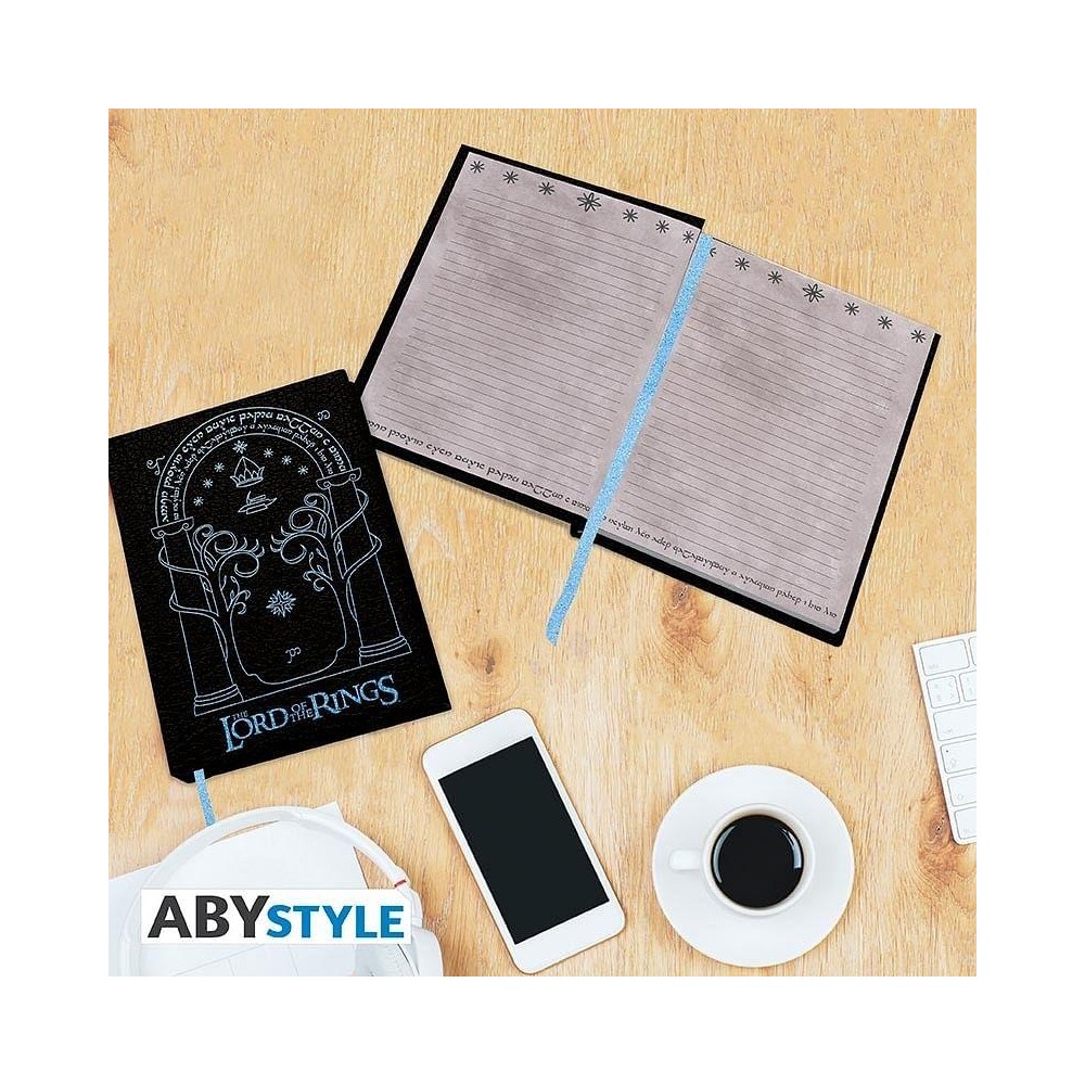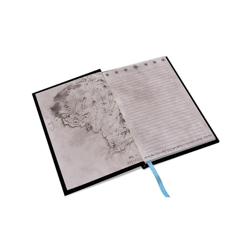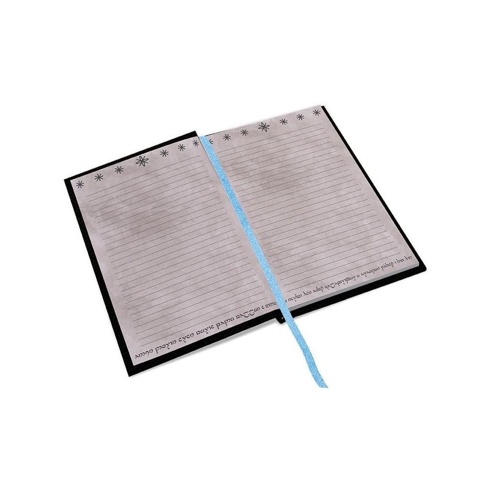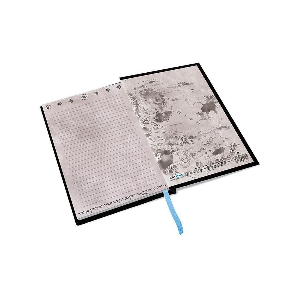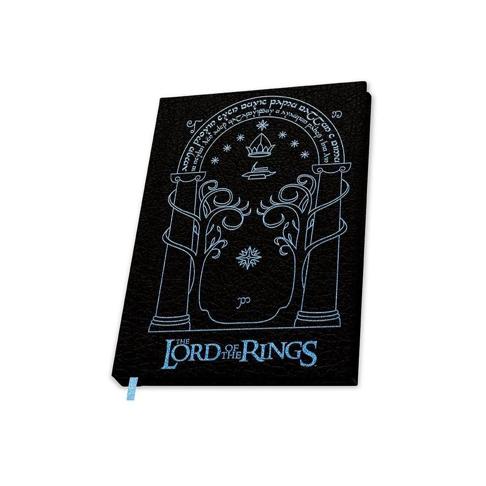 Precizně vyvedený linkovaný zápisník v pevných deskách s grafikou Durinových dveří - Západní brány Morie (také Trpasluj nebo Khazad-dûm) je tím správným místem pro poznámky a nápady milovníků fantasy trilogie Pán prstenů. Zadní stranu obálky zdobí Prsten moci, na vnitřní straně desek se nachází mapa Středozemě a součástí zápisníku je i záložka.
