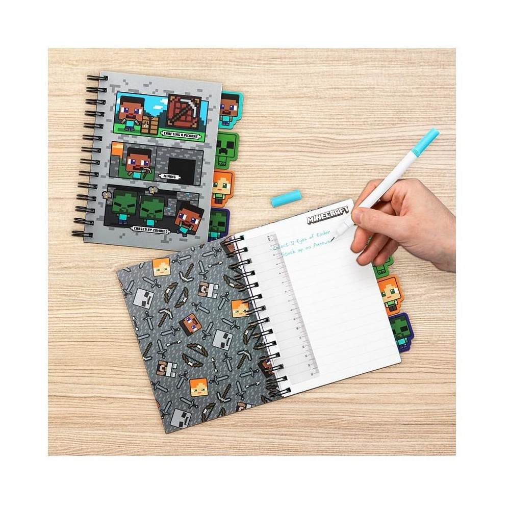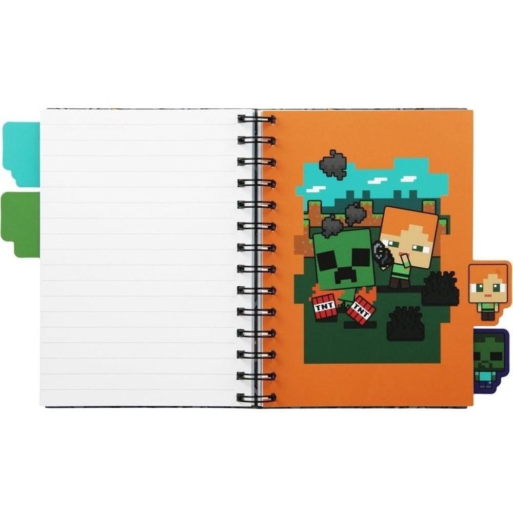 Uvnitř linkovaného zápisníku pro hráče Minecraftu najdeš spoustu místa pro své záznamy a poznámky nejen k herním dobrodružstvím v úžasném světě z kostiček. Zápisník má kroužkovou vazbu a najdeš v něm 4 mobilní oddělovače v podobě Stevea, Alex, Creepera a Zombie. Součástí je také 15 cm dlouhé pravítko.