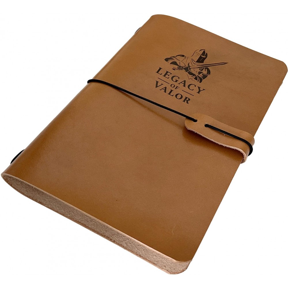 **Kožený zápisník Legacy of Valor** je elegantní a odolný doplněk pro všechny, kdo chtějí uchovat své myšlenky, poznámky nebo skici v autentickém středověkém stylu! Zápisník je **obalen v pravé hnědé kůži a zdobí ho precizně vypálené logo hry Legacy of Valor**, které dodává každému kousku jedinečný charakter. **Čisté listy uvnitř** poskytují prostor pro psaní, kreslení nebo plánování tvých vlastních dobrodružství. **Praktické zavírání na gumu** s kusem kůže chrání obsah zápisníku a zároveň podtrhuje jeho ručně vyráběný a autentický vzhled. Stylový, pevný a nadčasový – zápisník Legacy of Valor je ideální pro fanoušky hry i sběratele!