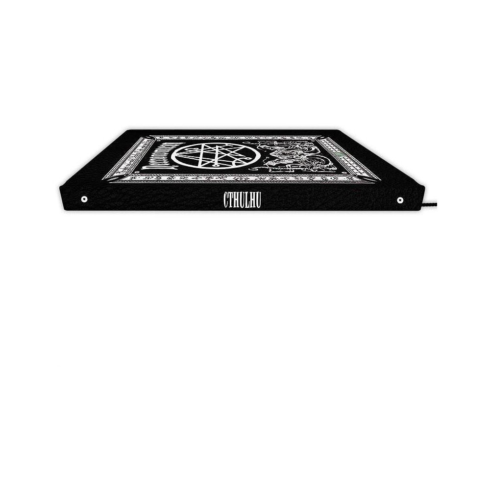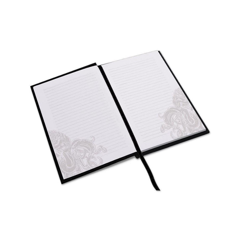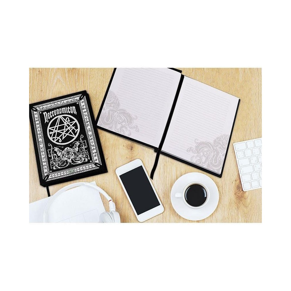 Tento zápisník v pevné vazbě s grafikou Necronomiconu od Abdula al-Hazreda bude dobře sloužit všem, kdo se vydají v jeho šlépějích, stejně jako každému správnému vyšetřovateli pátrajícímu po Prastarých božstvech, včetně Cthulhu! Zápisník má záložku a 180 linkovaných stran, opatřených ve spodní části stylovými ilustracemi.